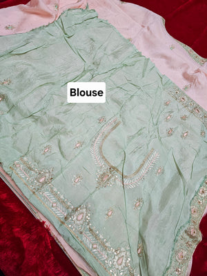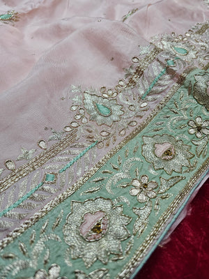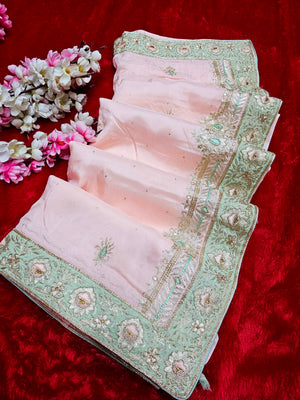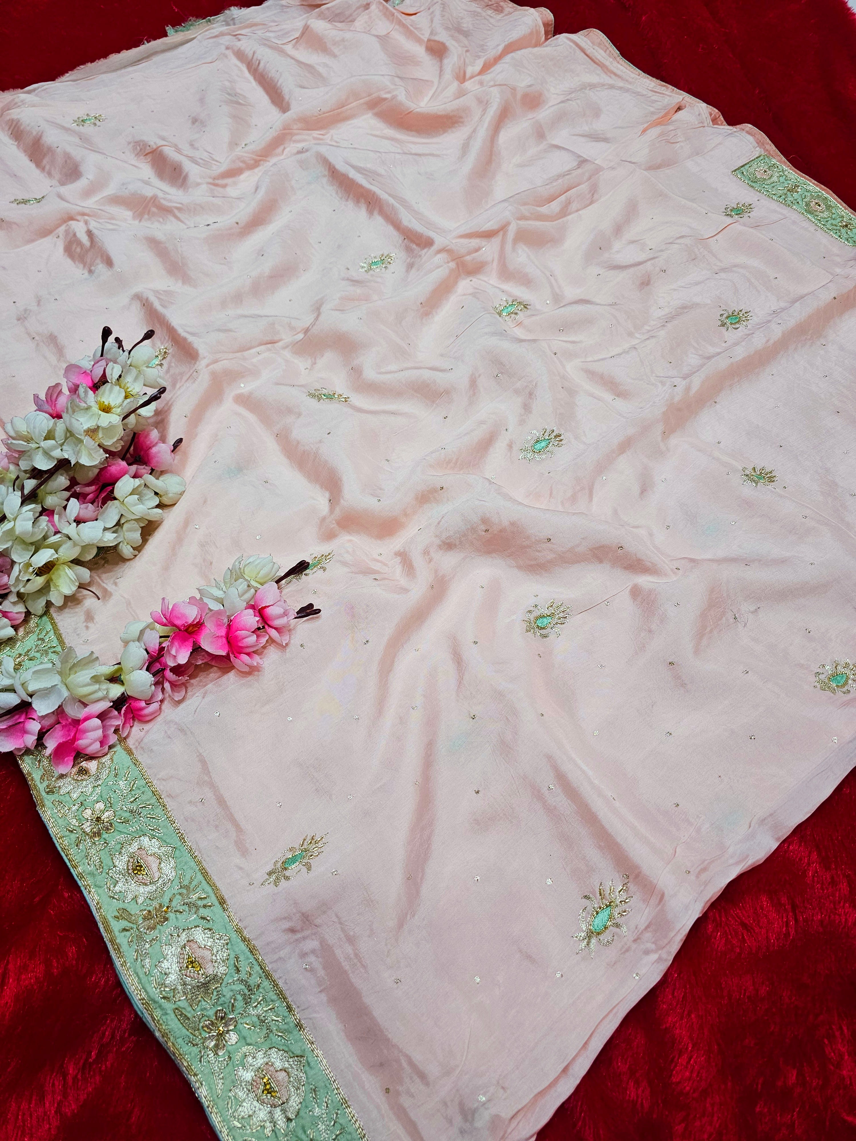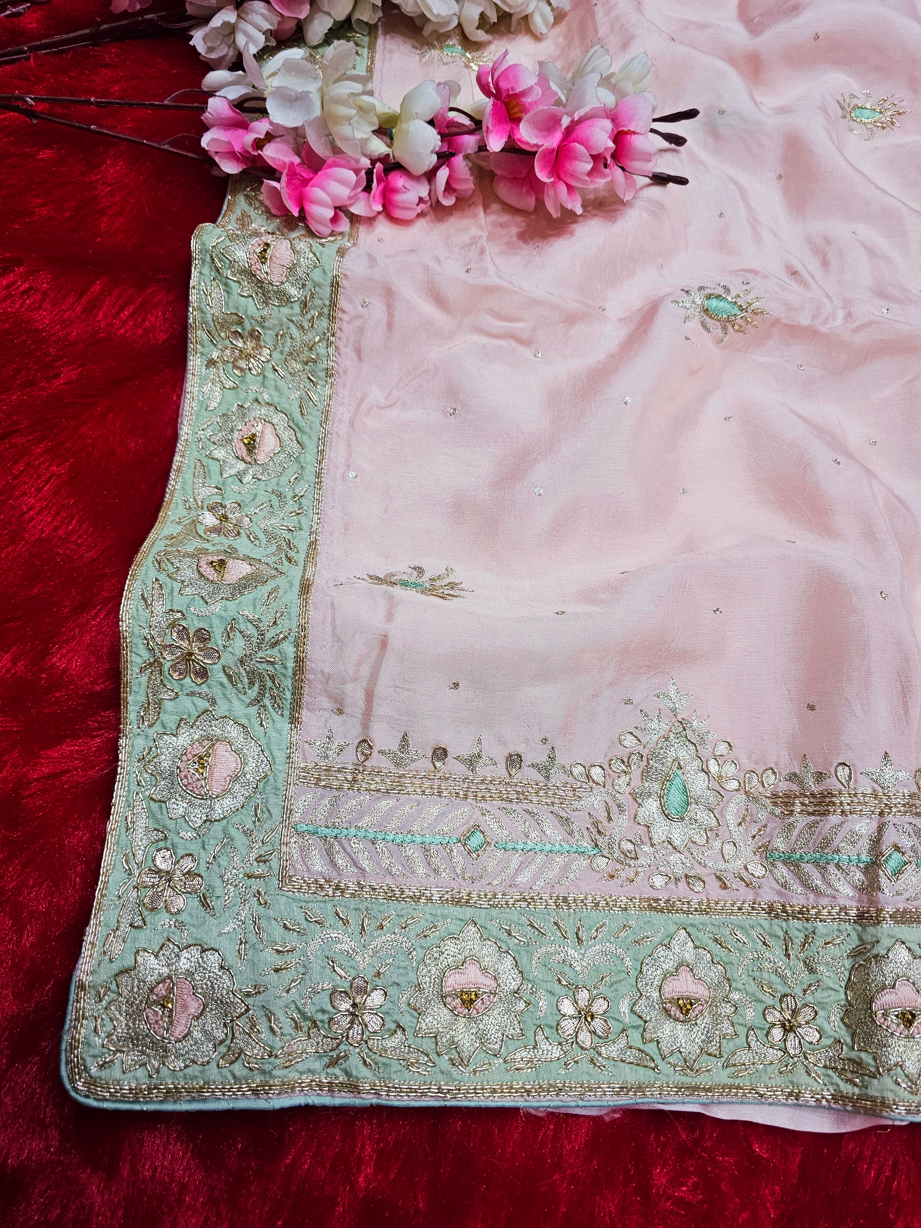 6630 Pure Upada Silk Premium Saree with Very Elegant Hand Pitta and Mukesh Work Pink Saree
