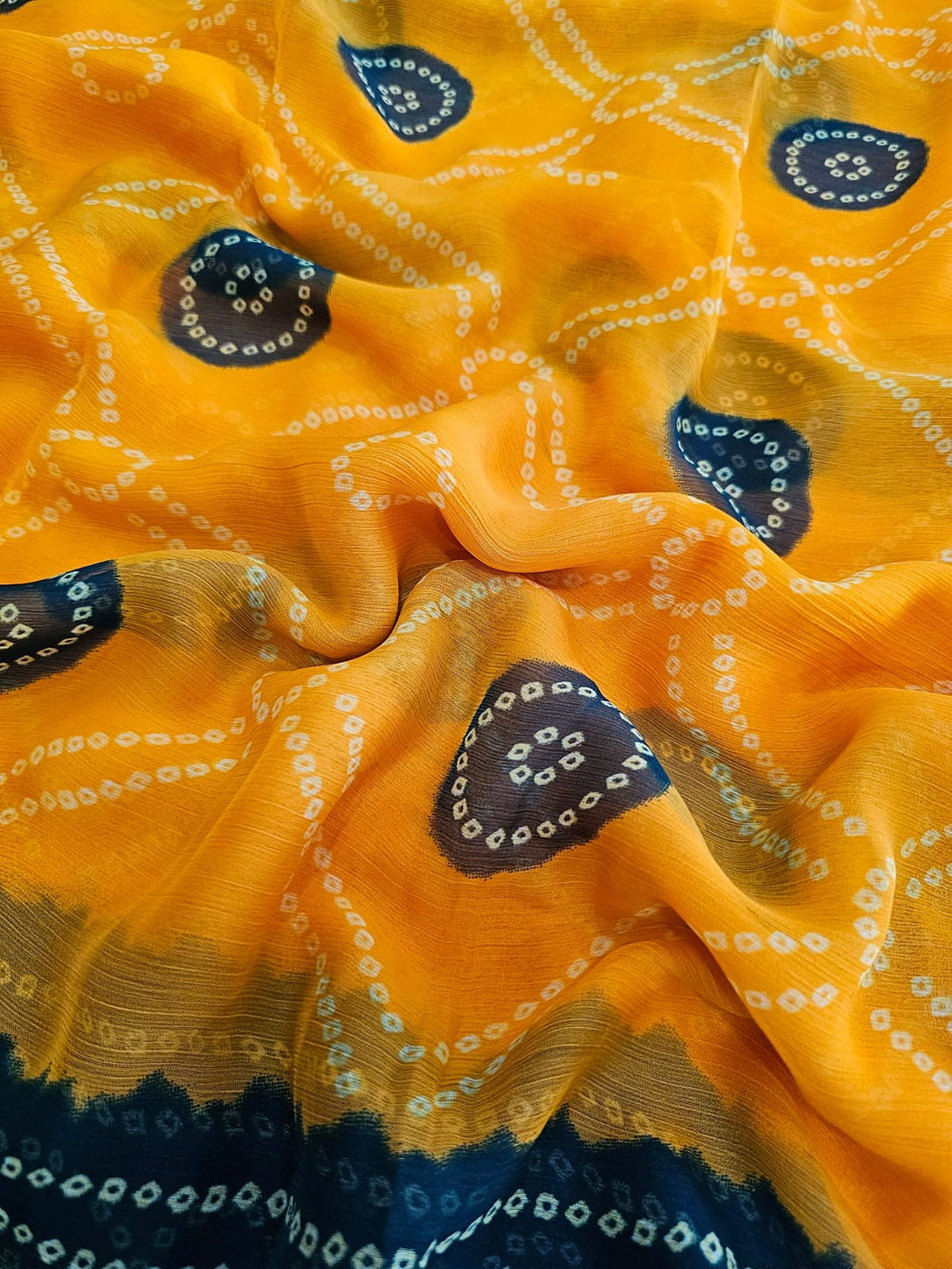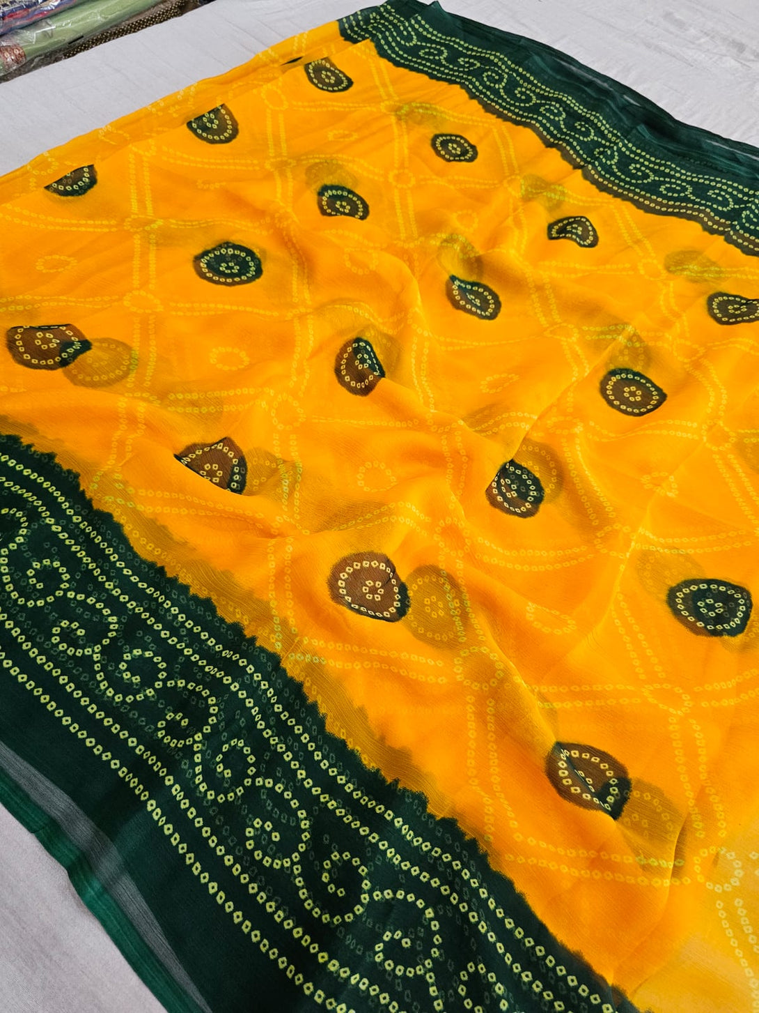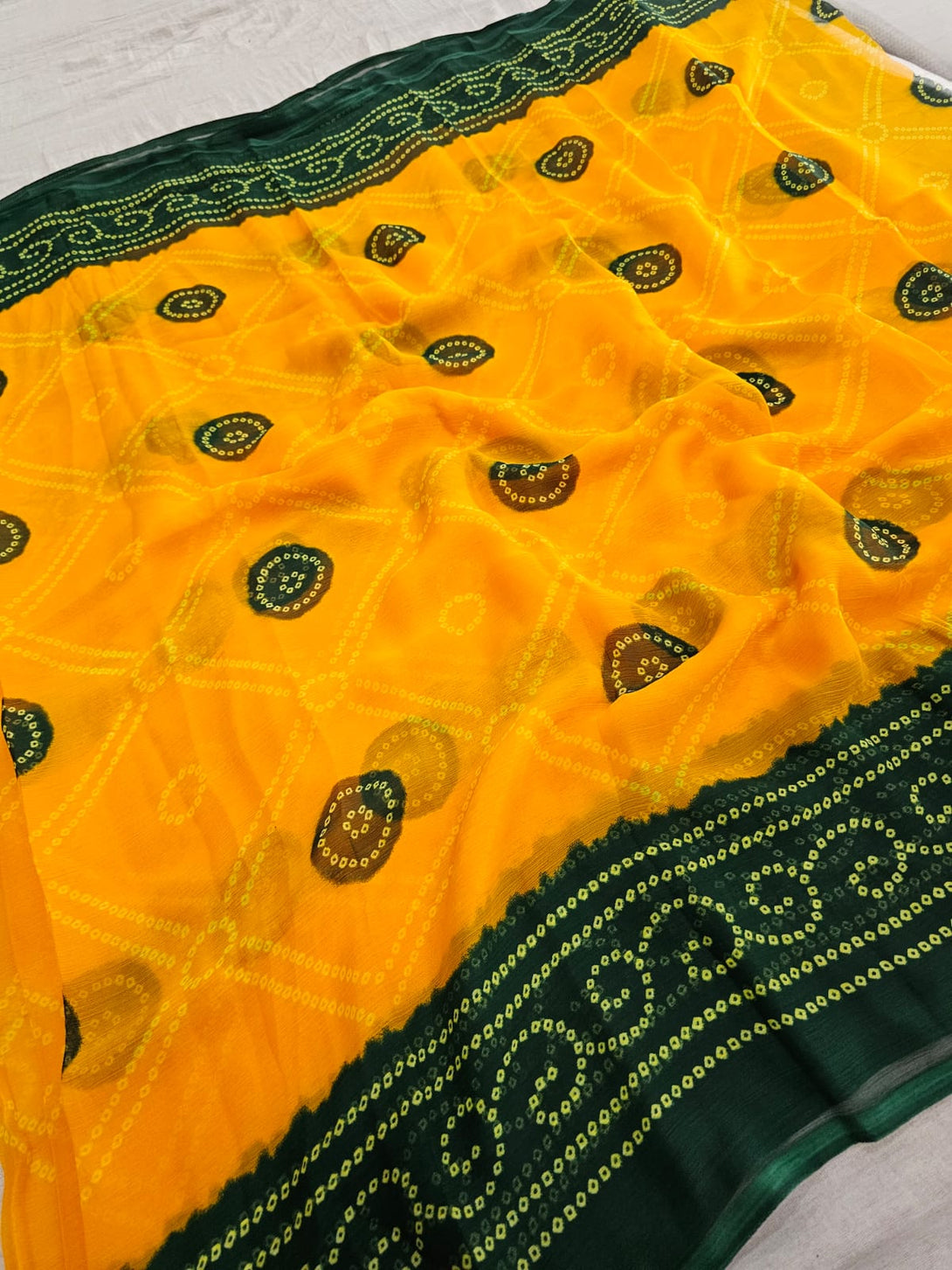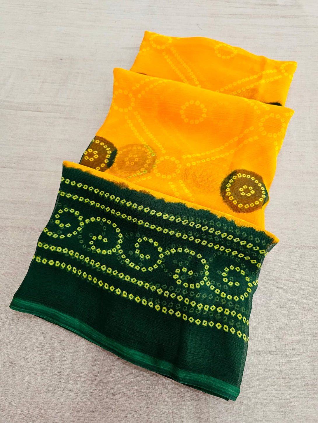 664001 Exclusive Chiffon Bandhej Print Saree - YELLOW GREEN