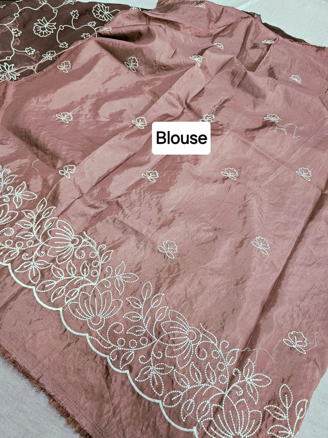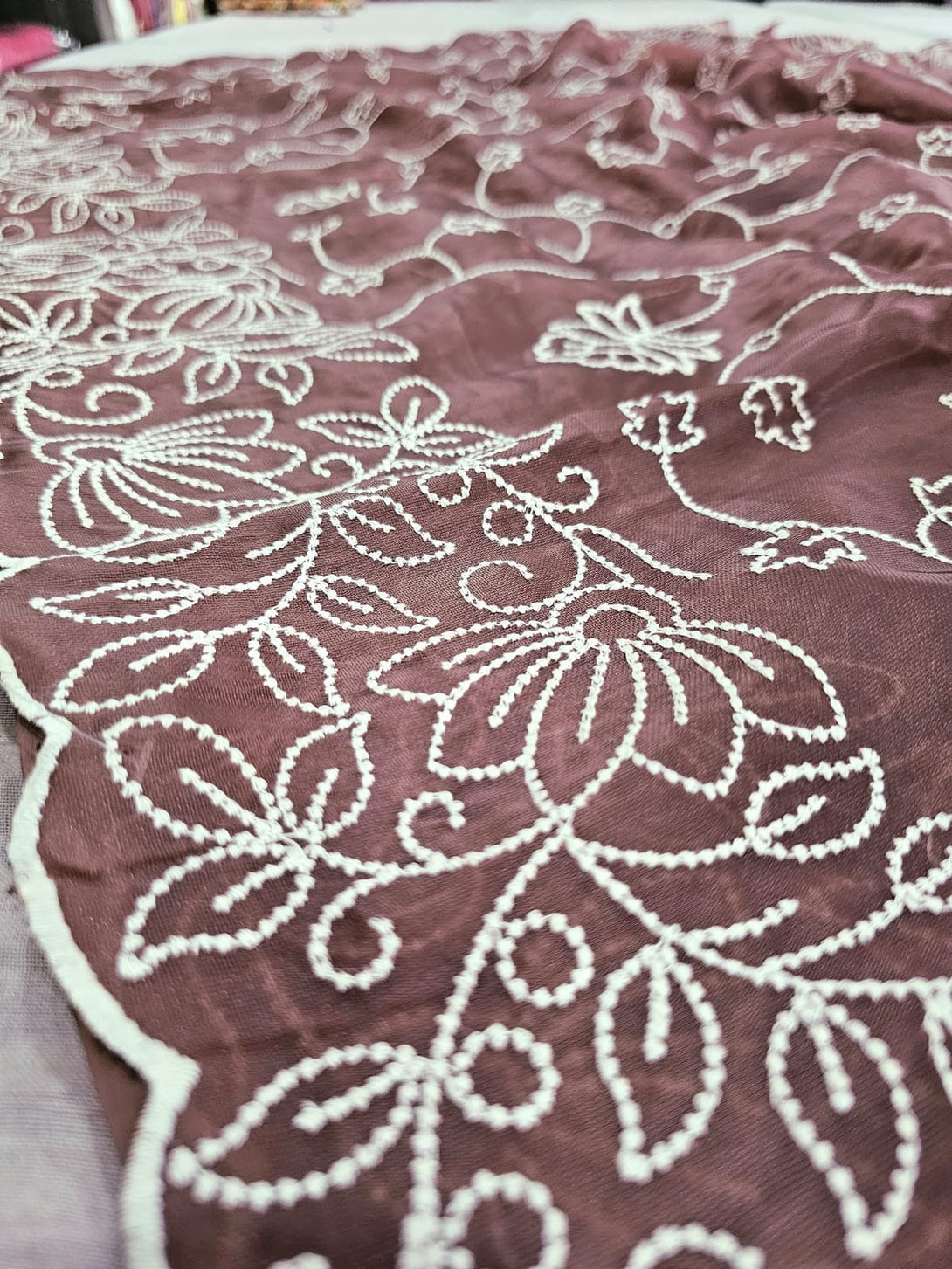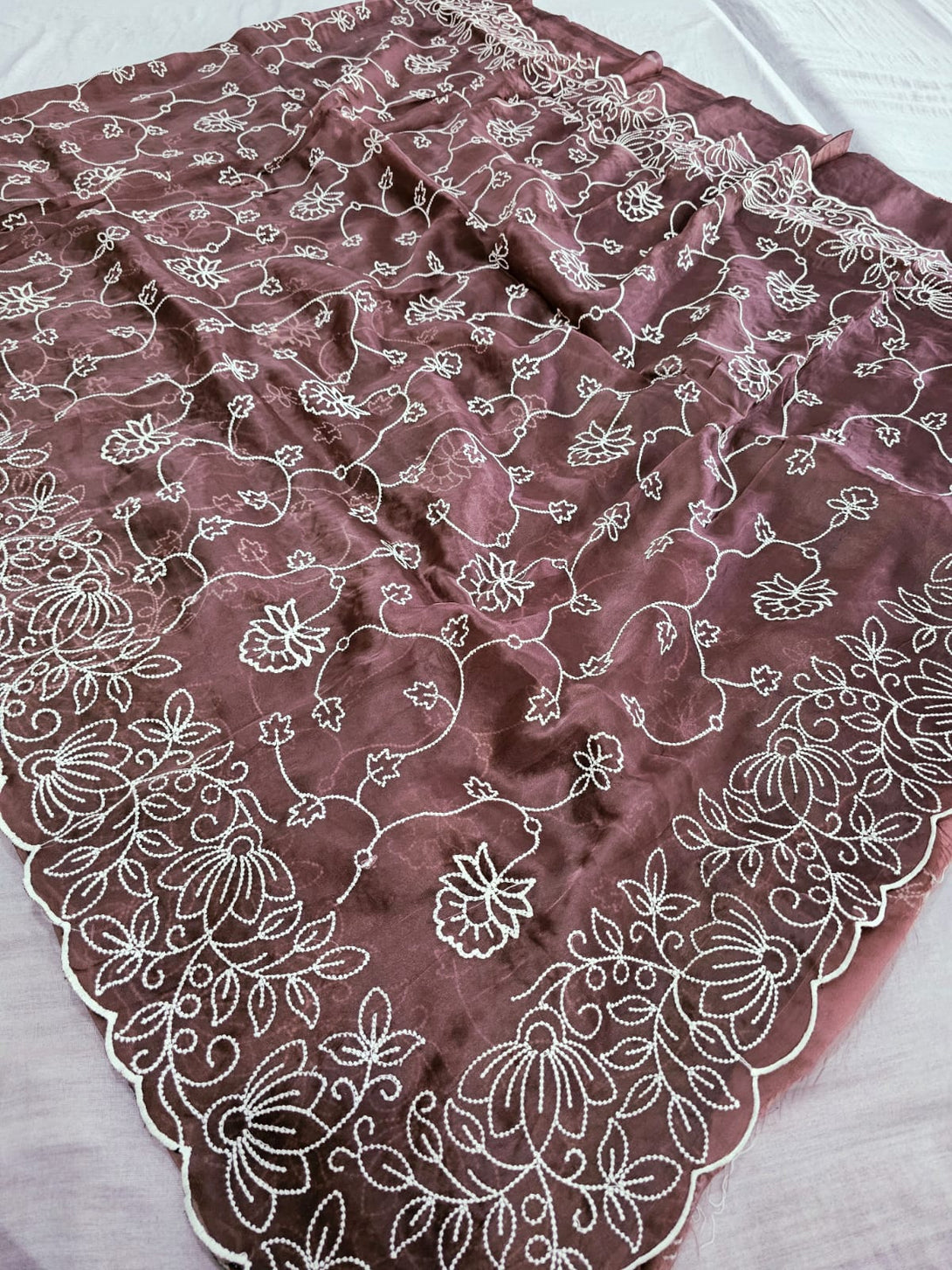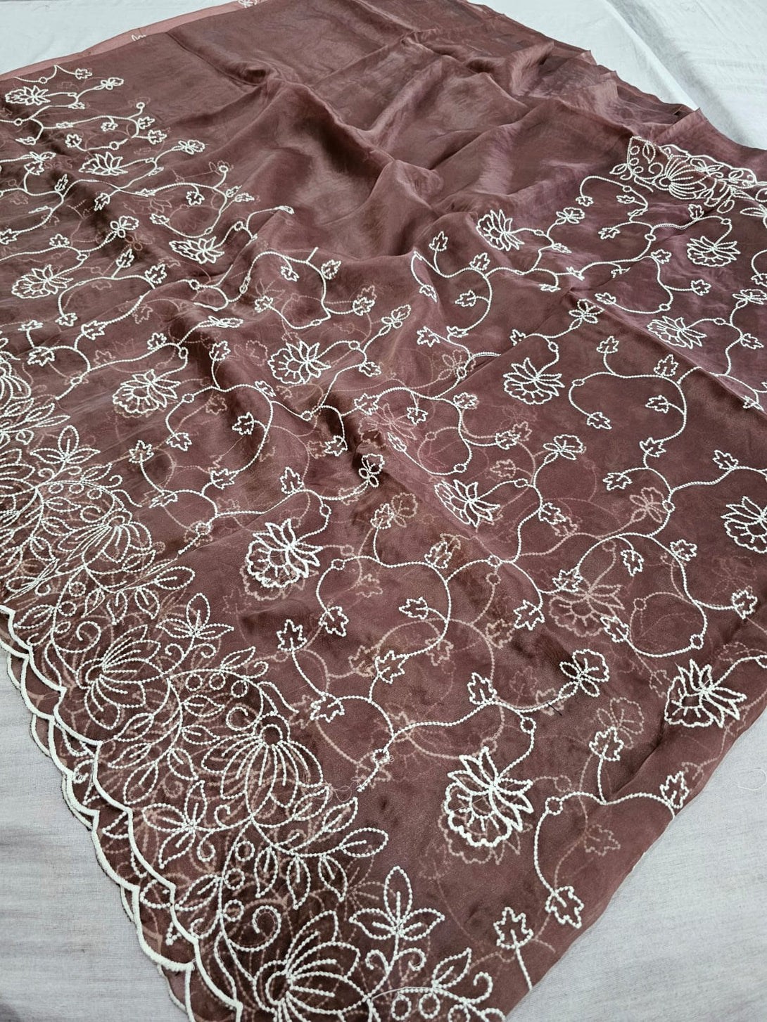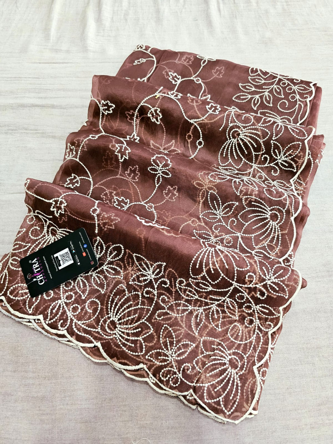 665003 Fancy Designer Semi Party Wear Thread Work Saree - Brown