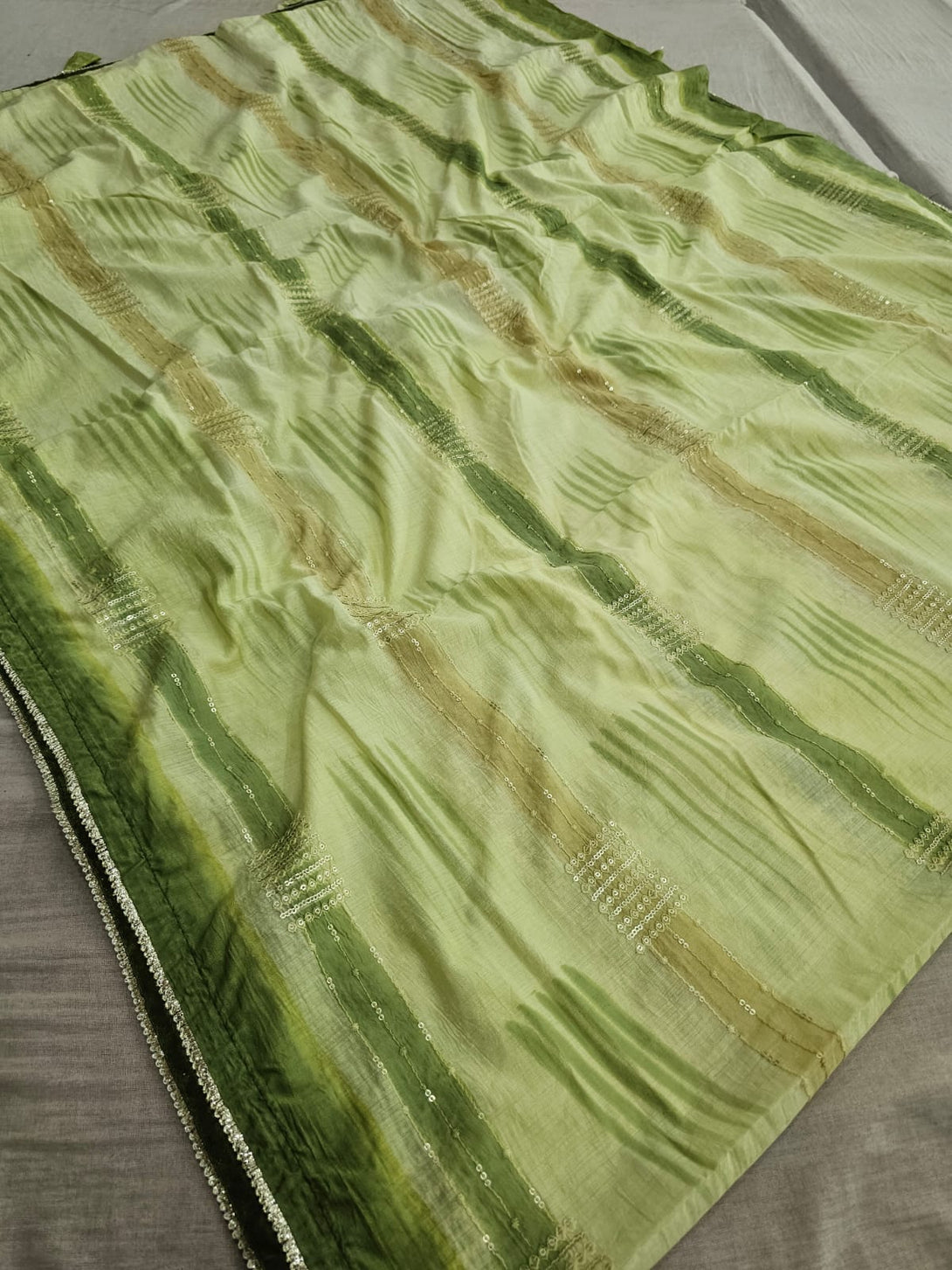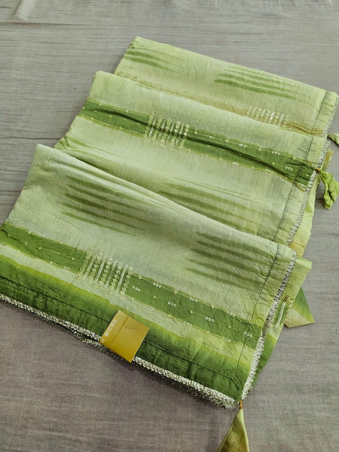 666005 Hand Dye Fancy Maslin Soft Cotton Saree - Green