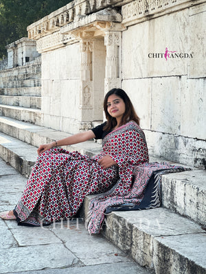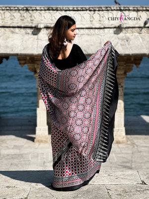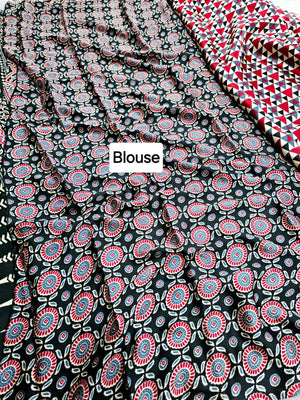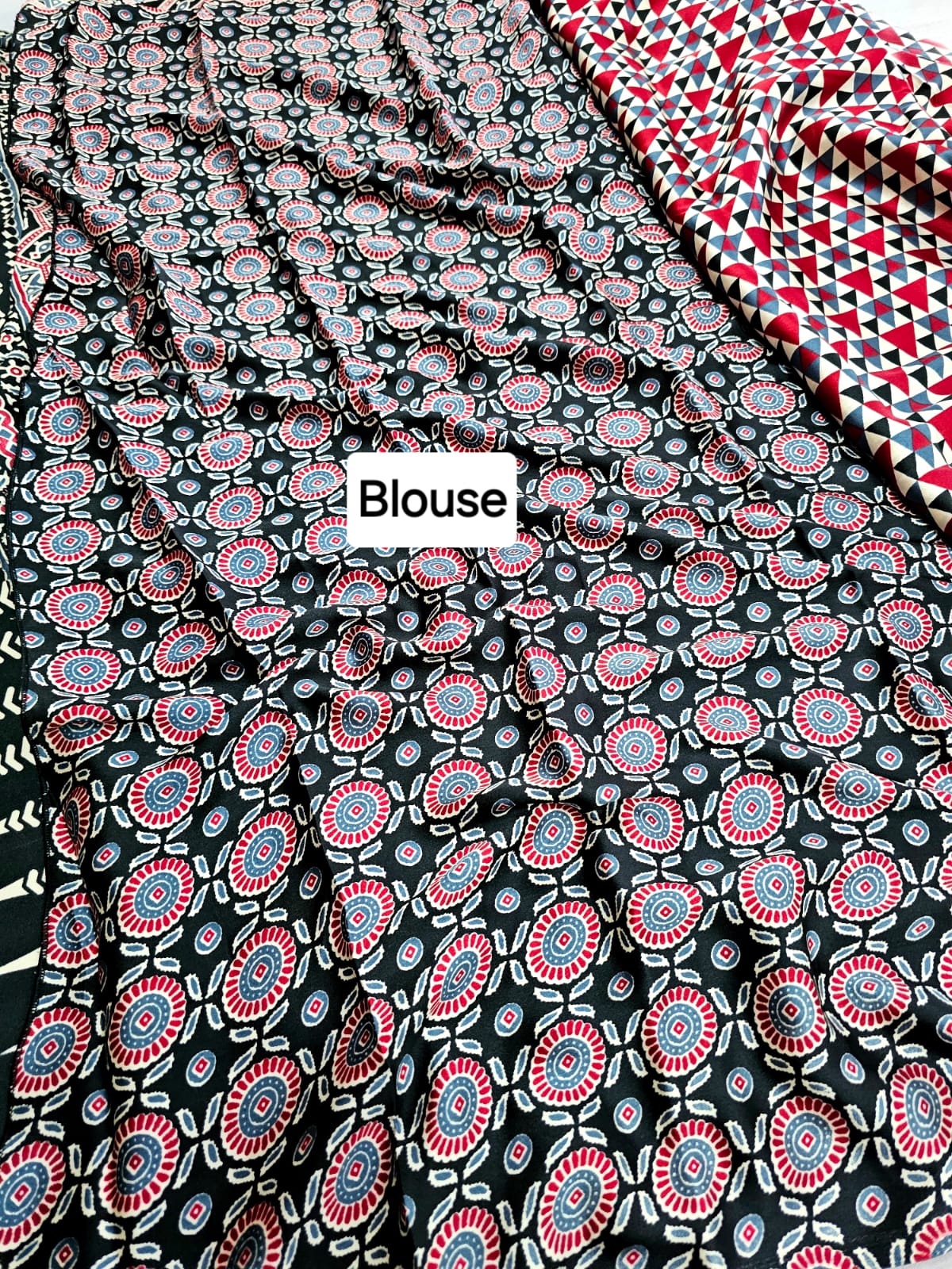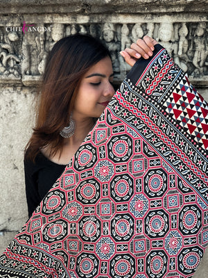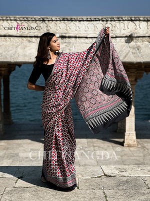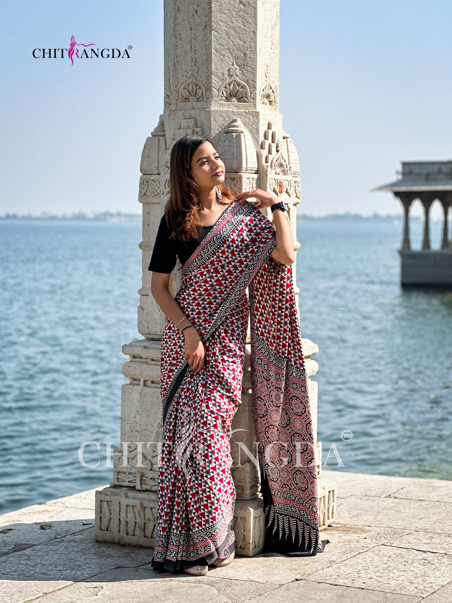 682007 Trending Ajrakh Print Semi Modal Silk Saree