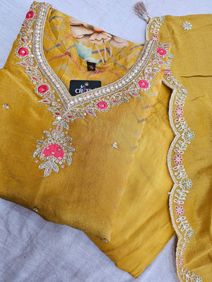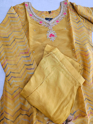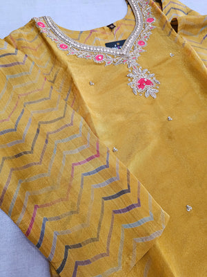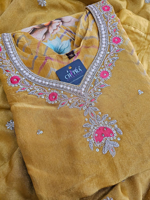 - Highlight : Pure Tissue Silk Handwork Kurti Set With Pant and Heavy Dupatta