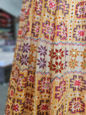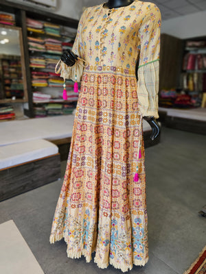 7087 Premium Pure Chanderi Silk Designer Gown With Hand Detailing