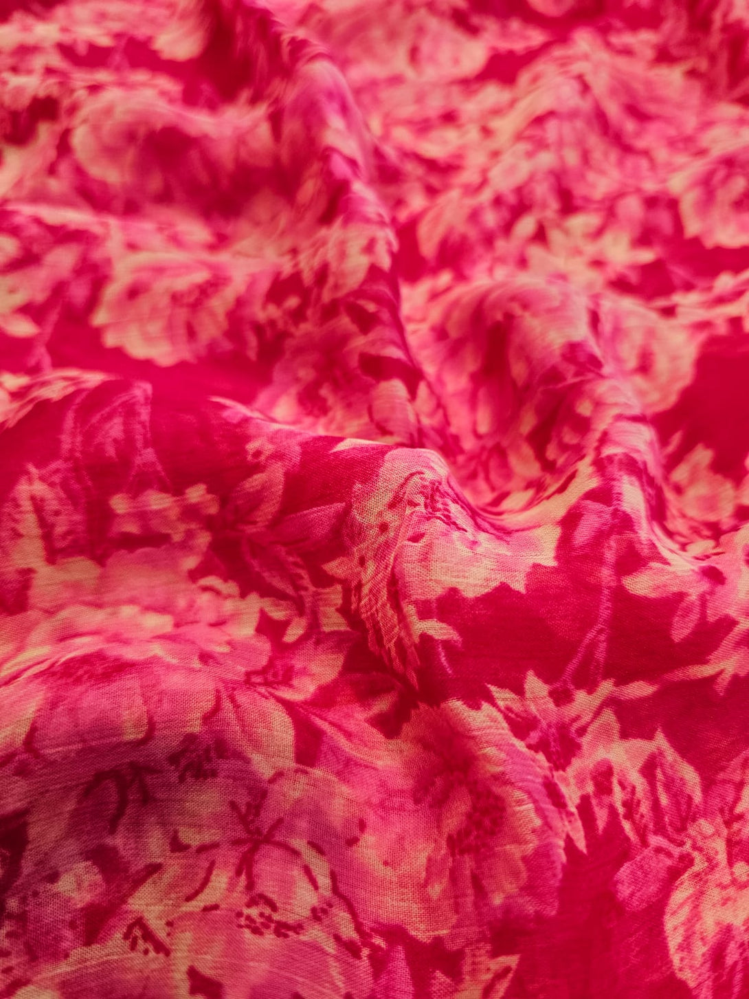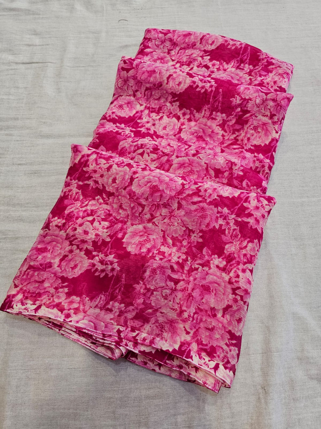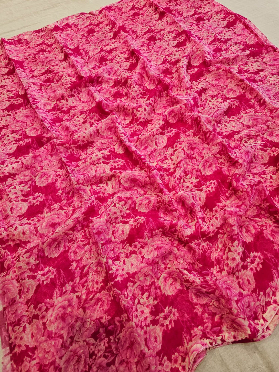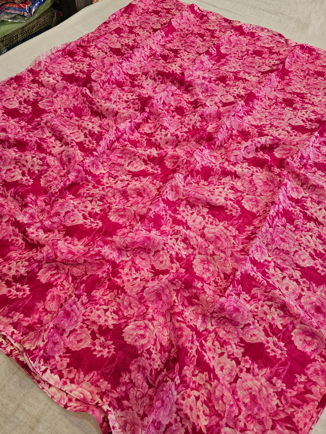 709005 Rajwadi Semi Chiffon Flower Print Saree - Rani