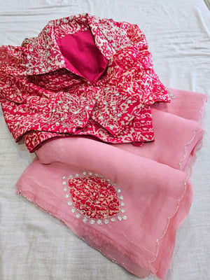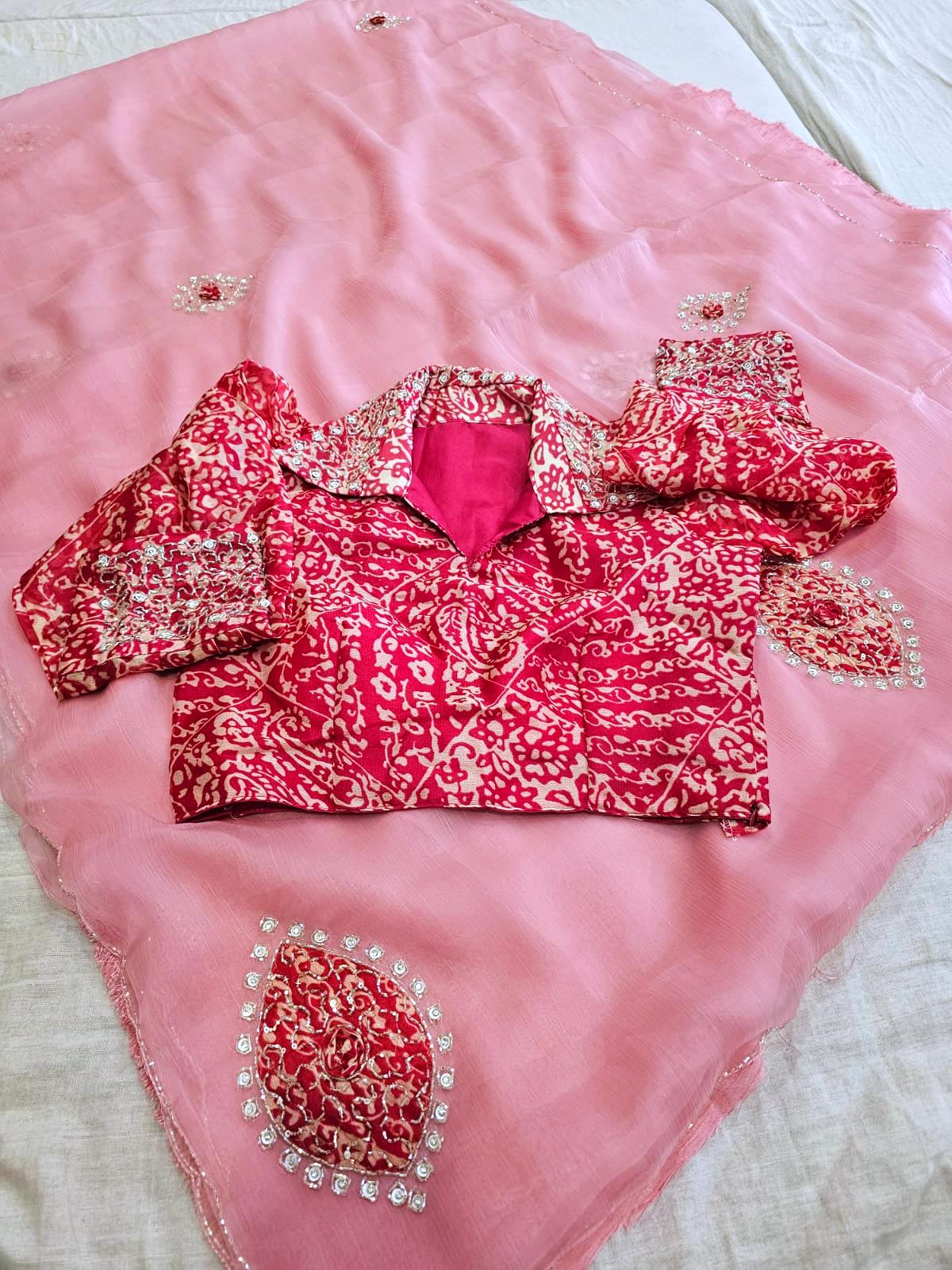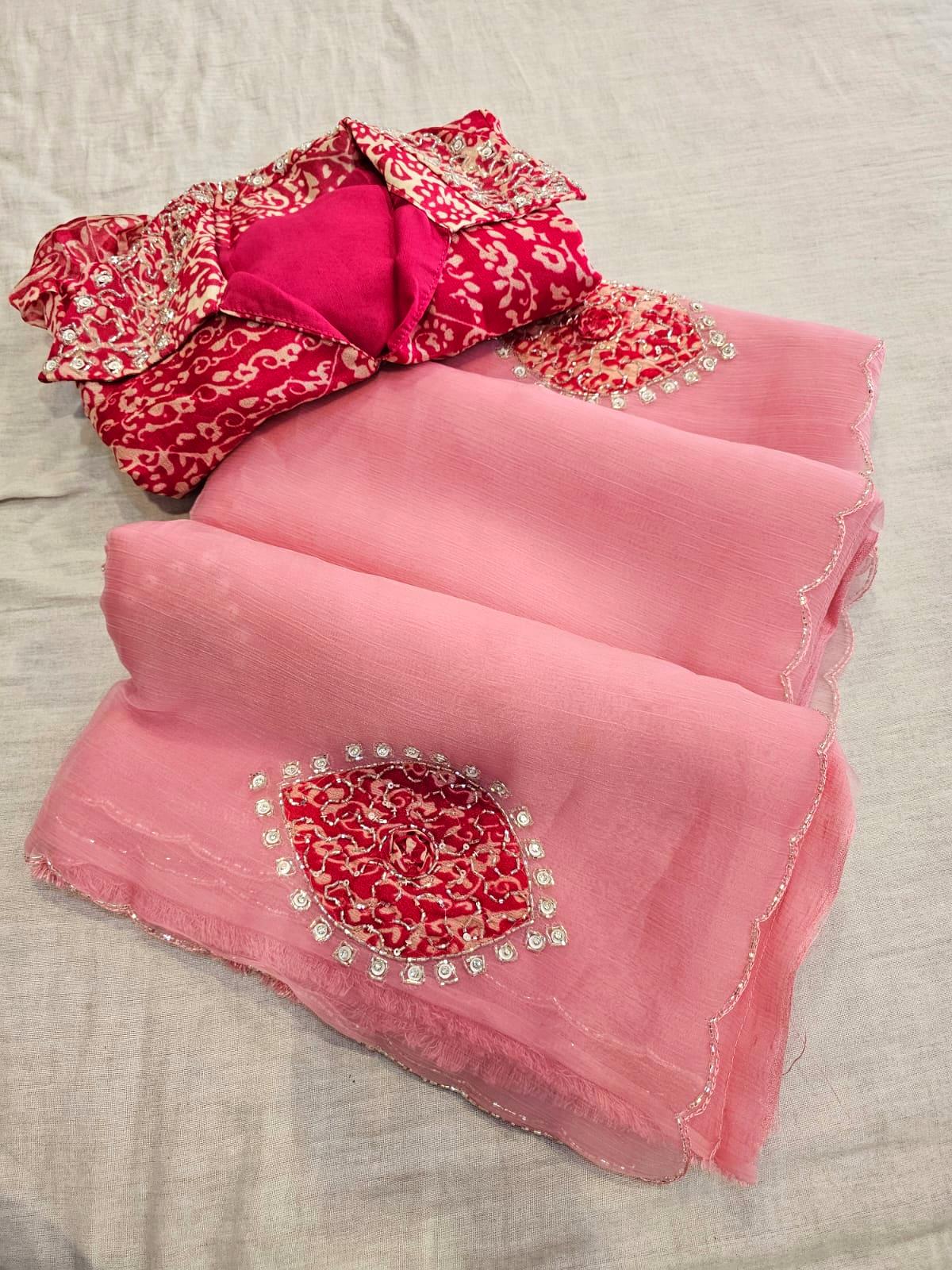 712003 Designer Chiffon Saree With Heavy Designer Stitched Blouse