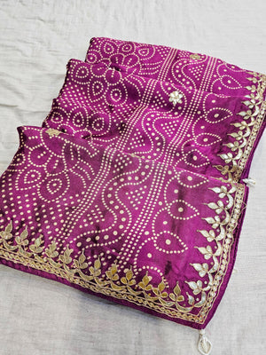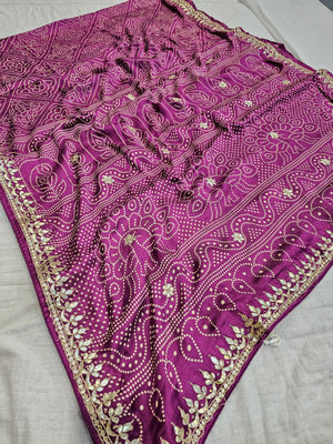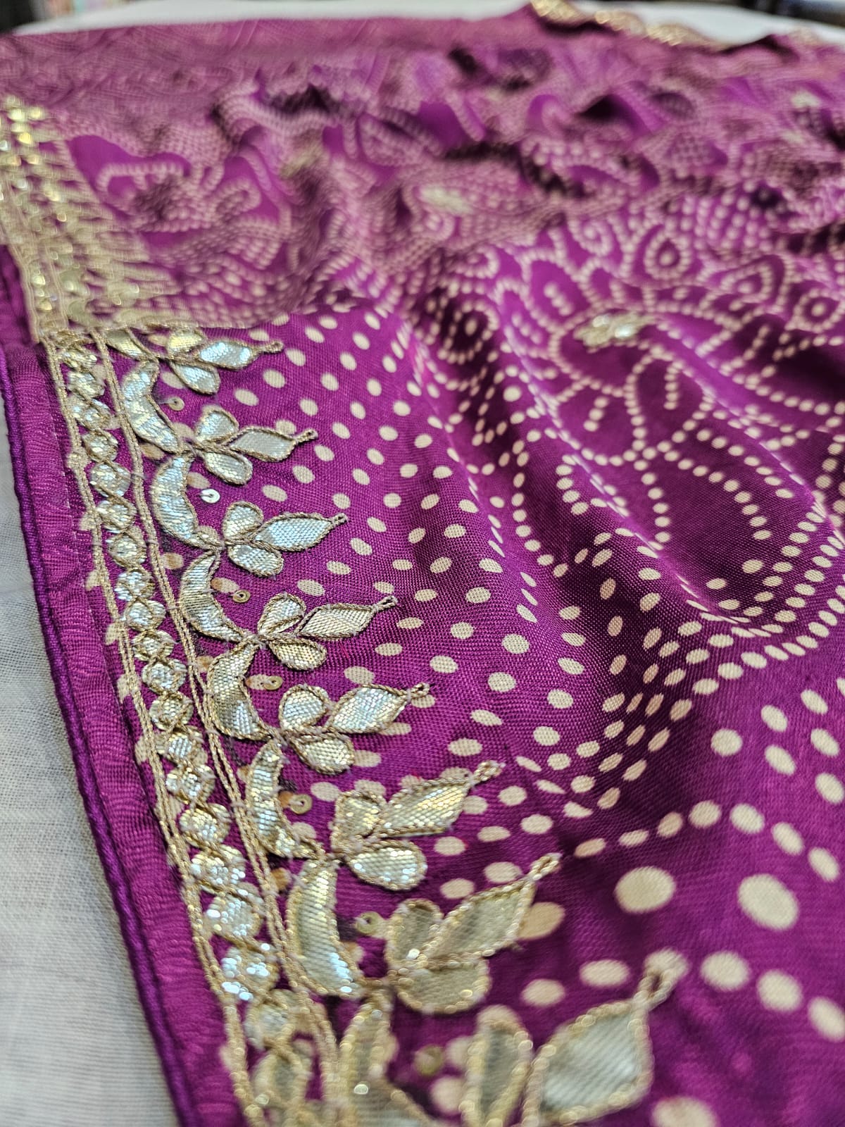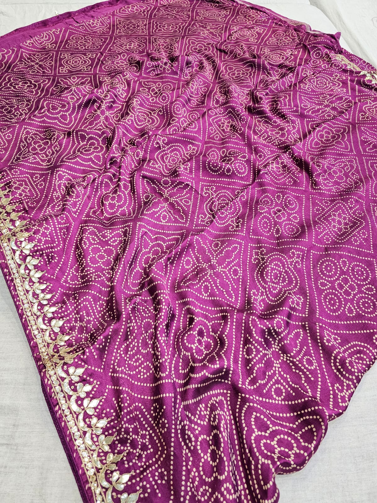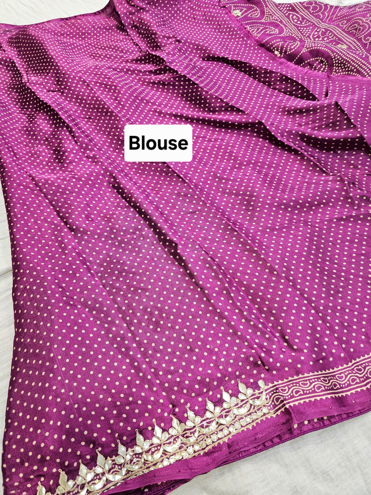 714001 Ajrakh Print Semi Gajji Silk Saree with Rajasthani Gota Patti Work