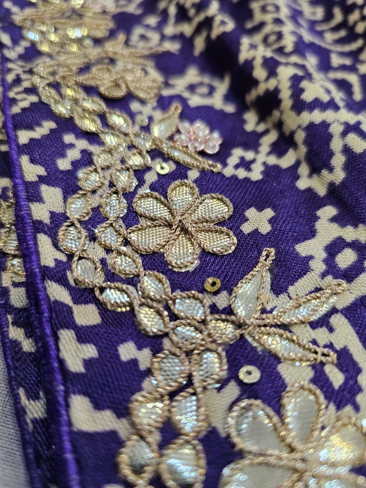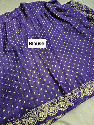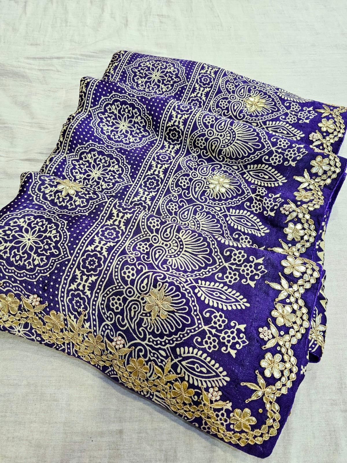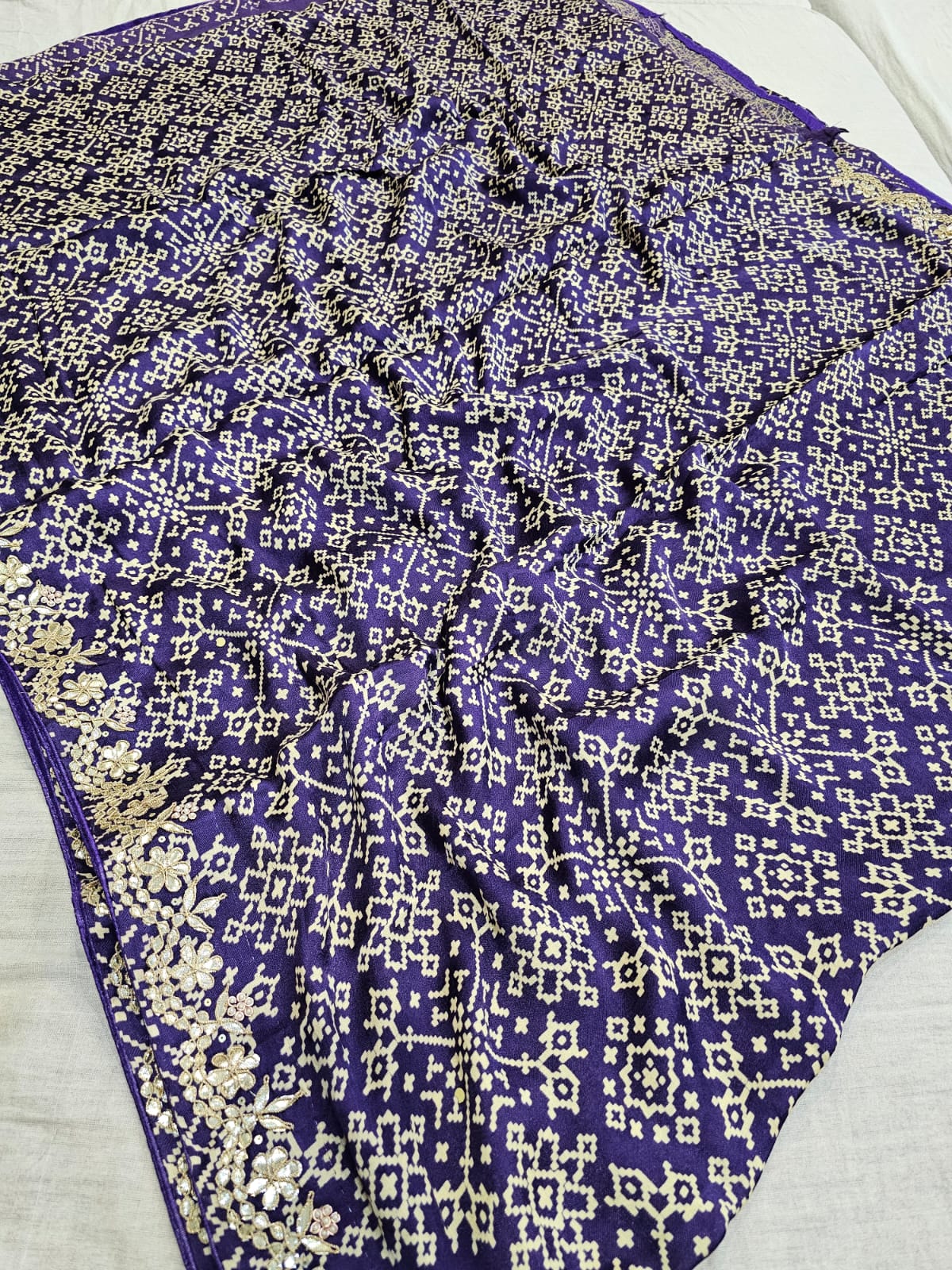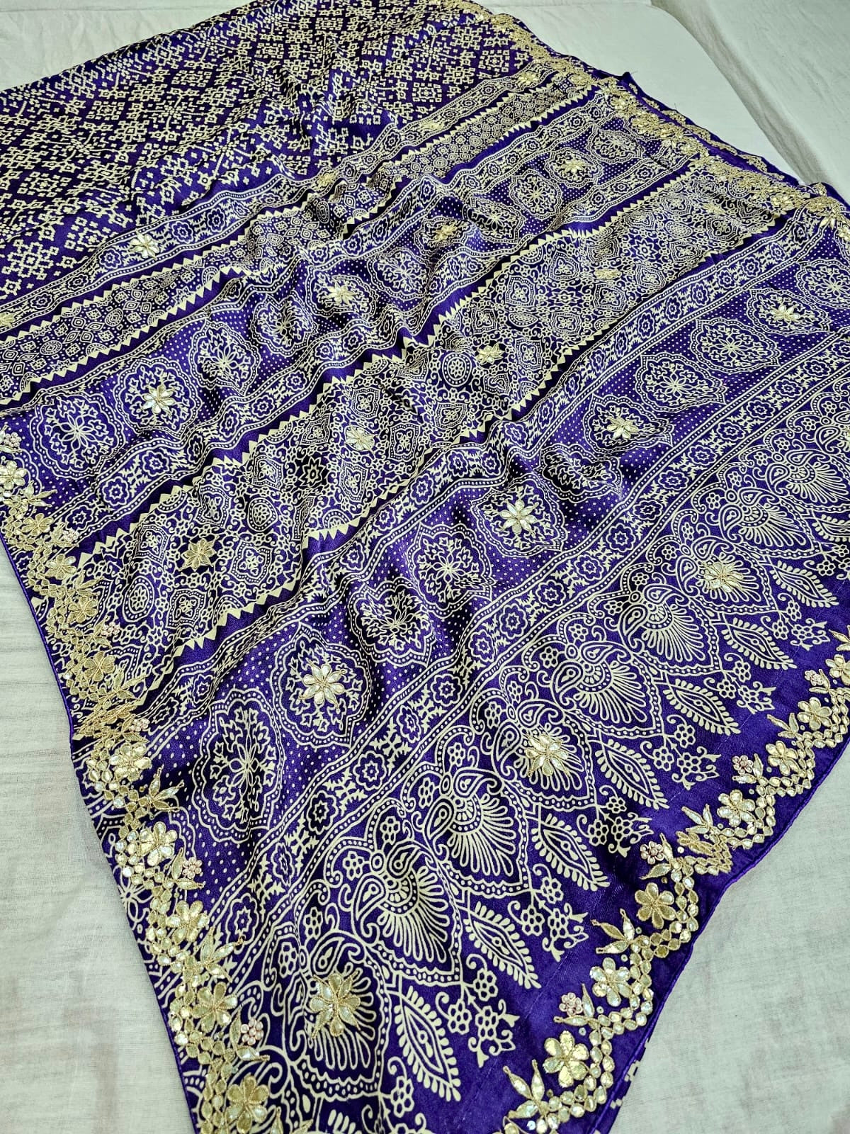 714002 Ajrakh and Patola Print Semi Gajji Silk Saree with Rajasthani Gota Patti Work