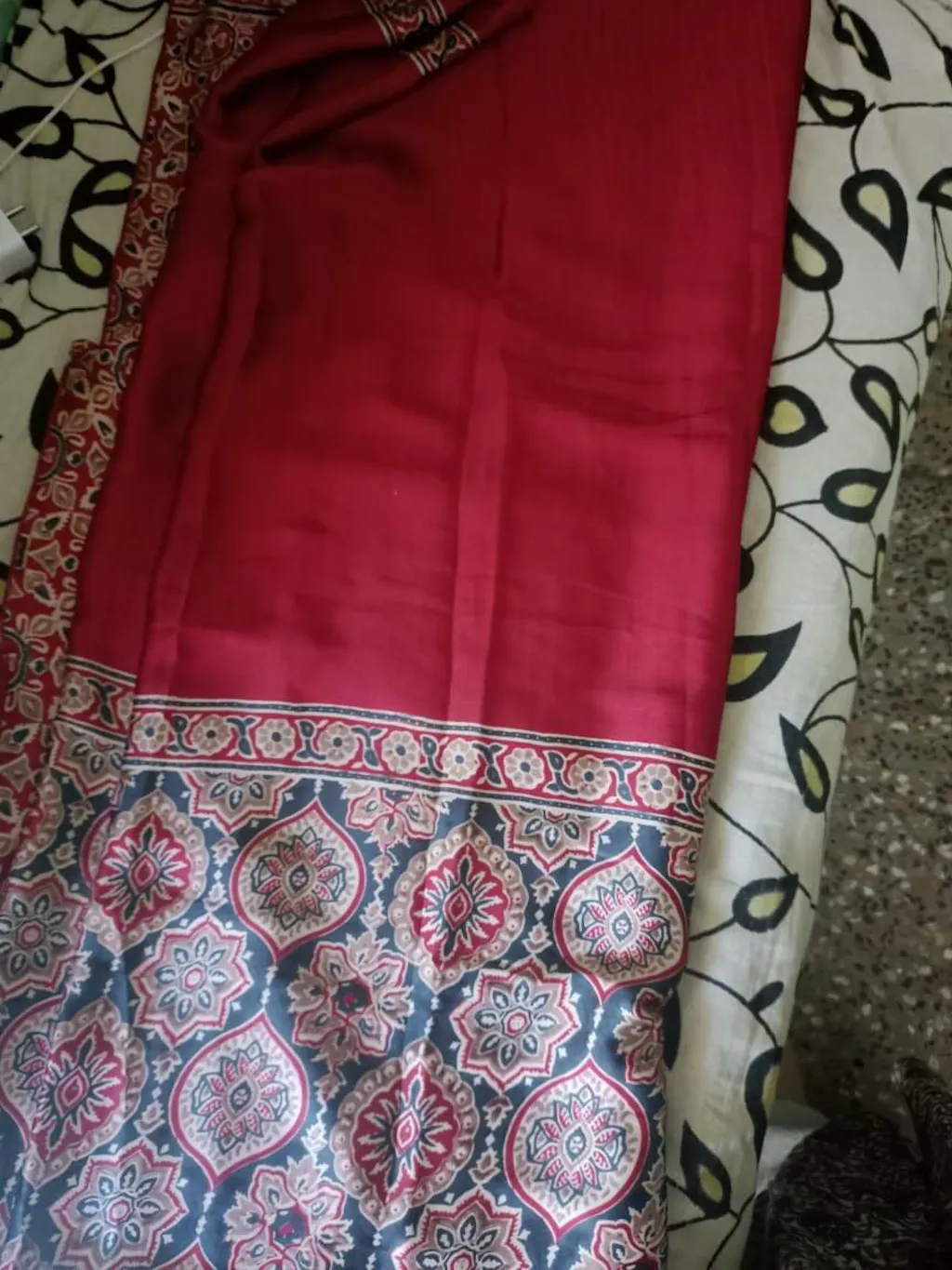 727001 Trending Ajrakh Print Semi Modal Silk Saree - Red