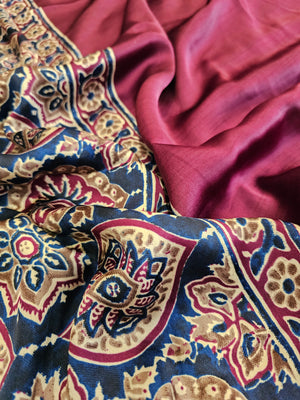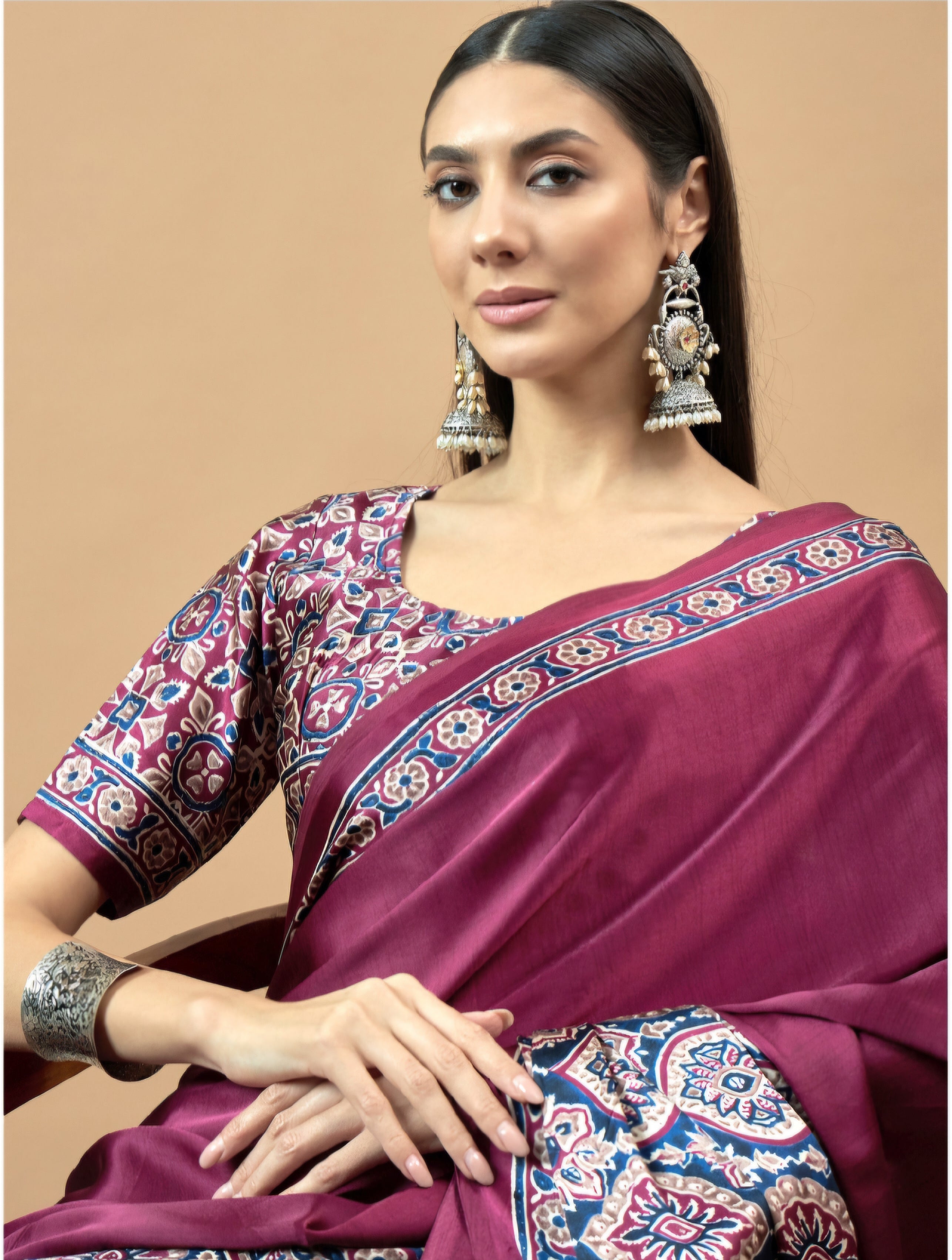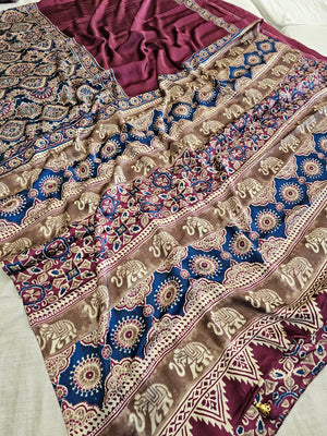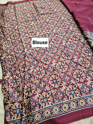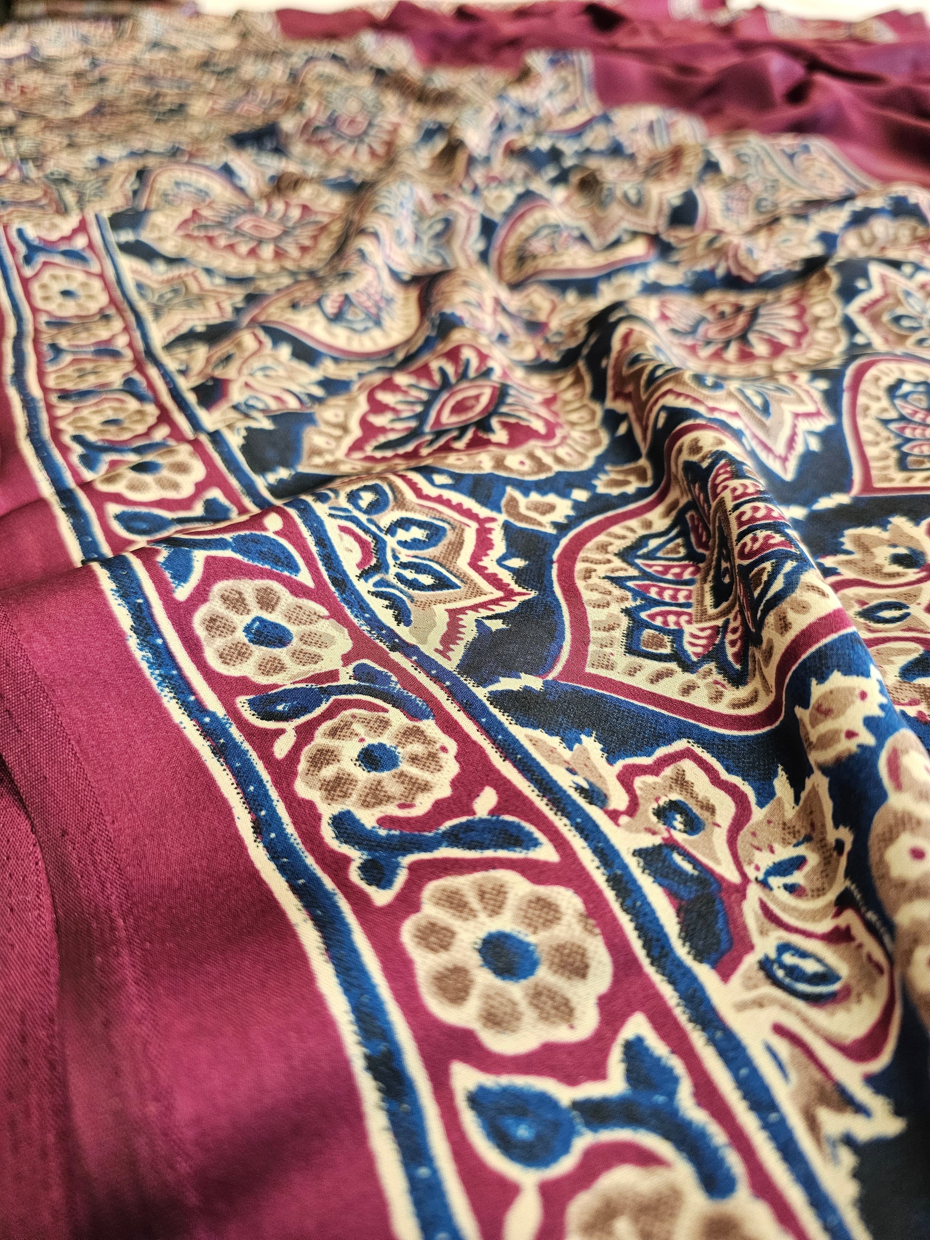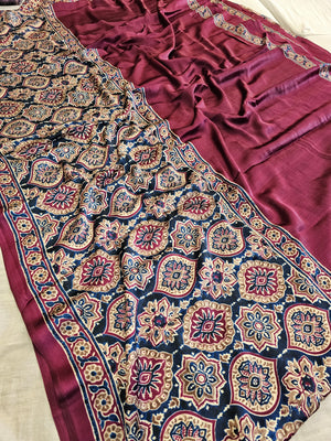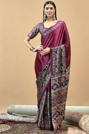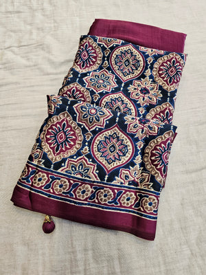 727001 Trending Ajrakh Print Semi Modal Silk Saree - Wine