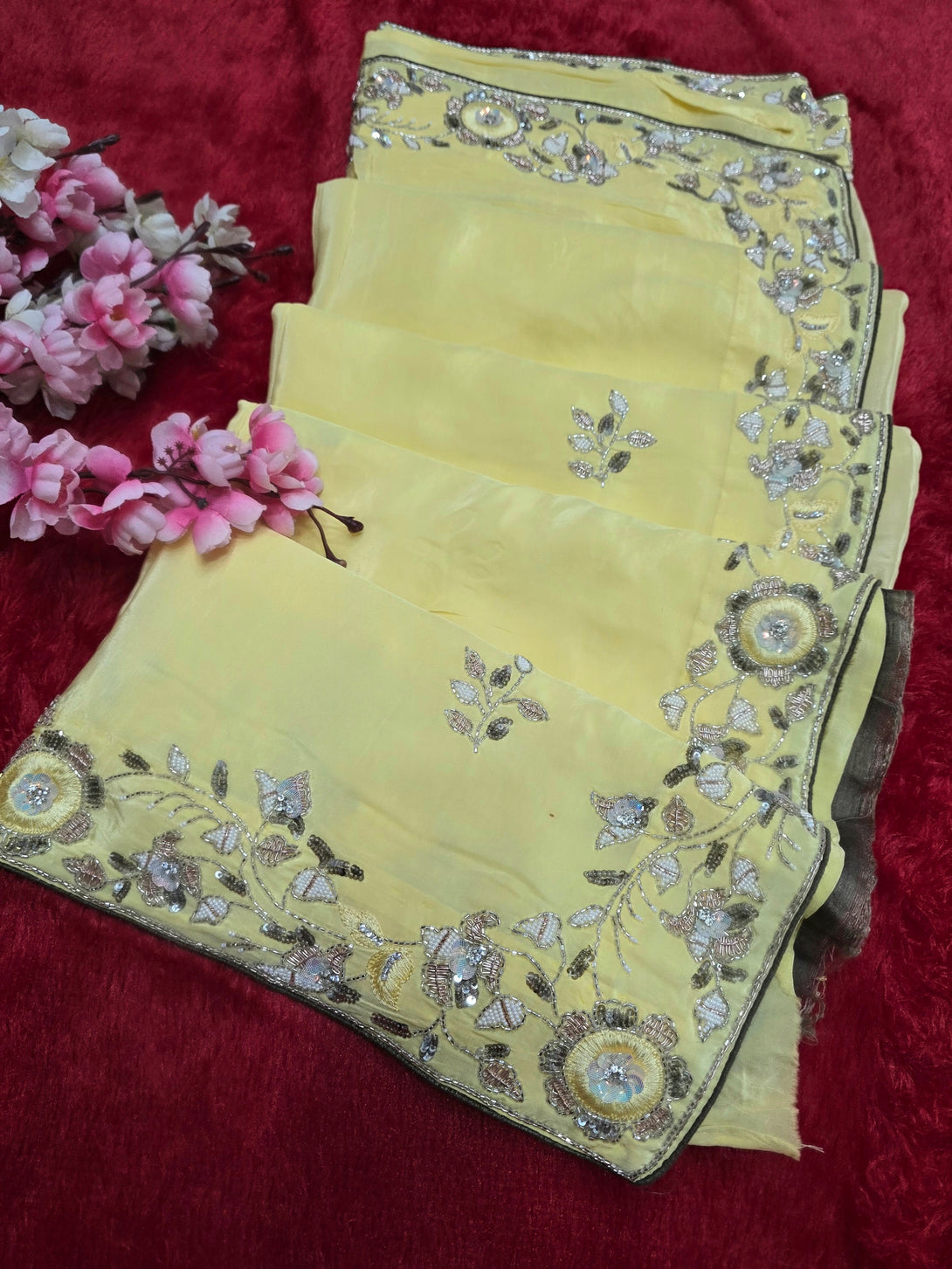 7329 Pure Crepe Silk Beautiful Hand Crafted Designer Chitra Special Saree