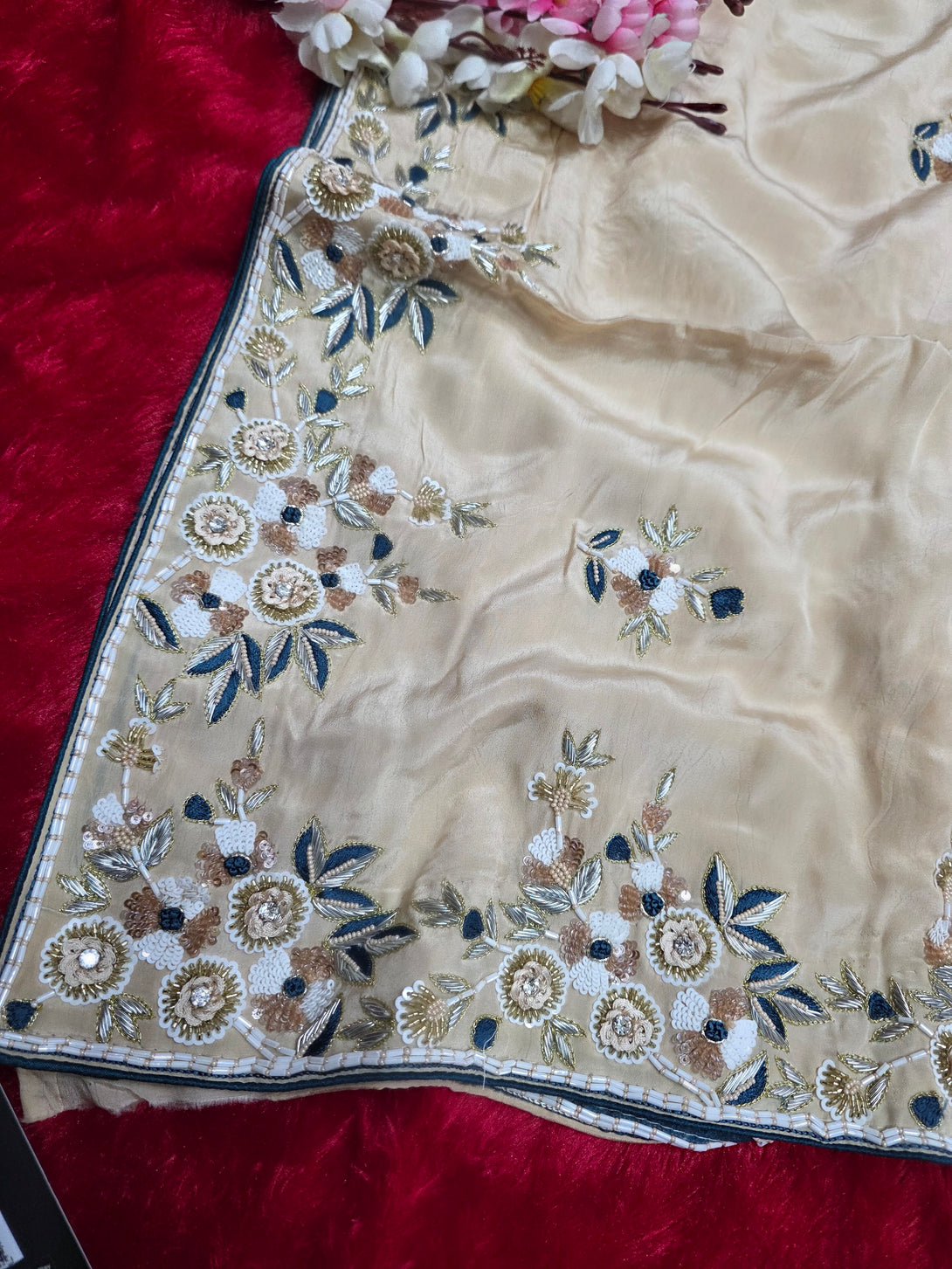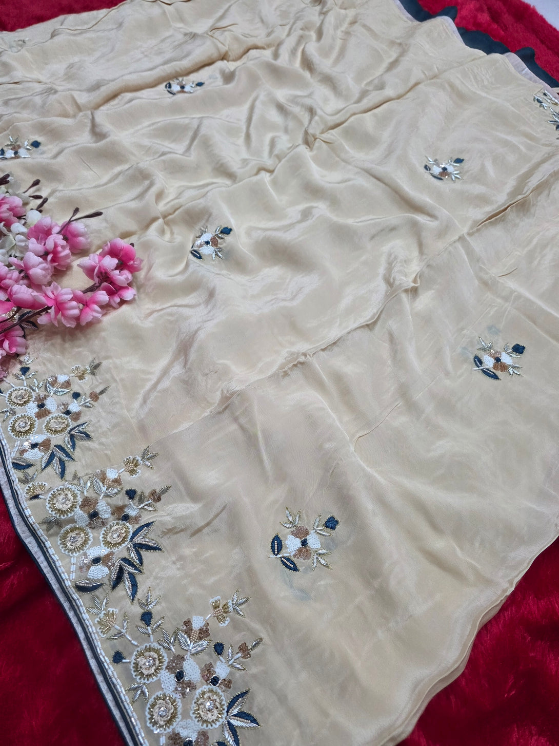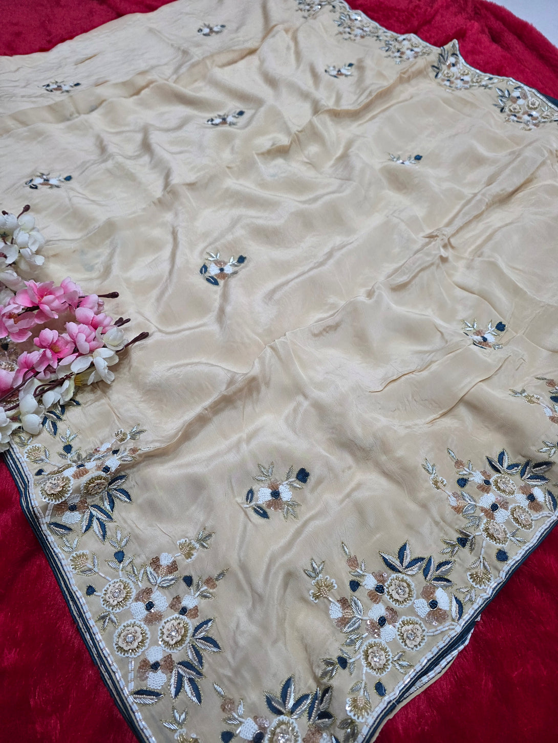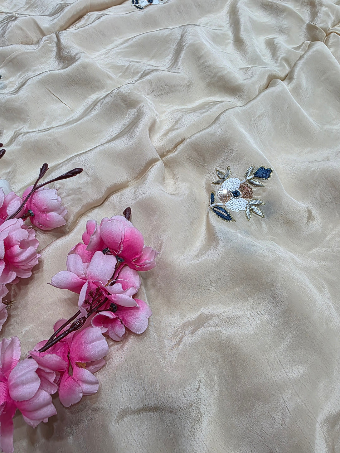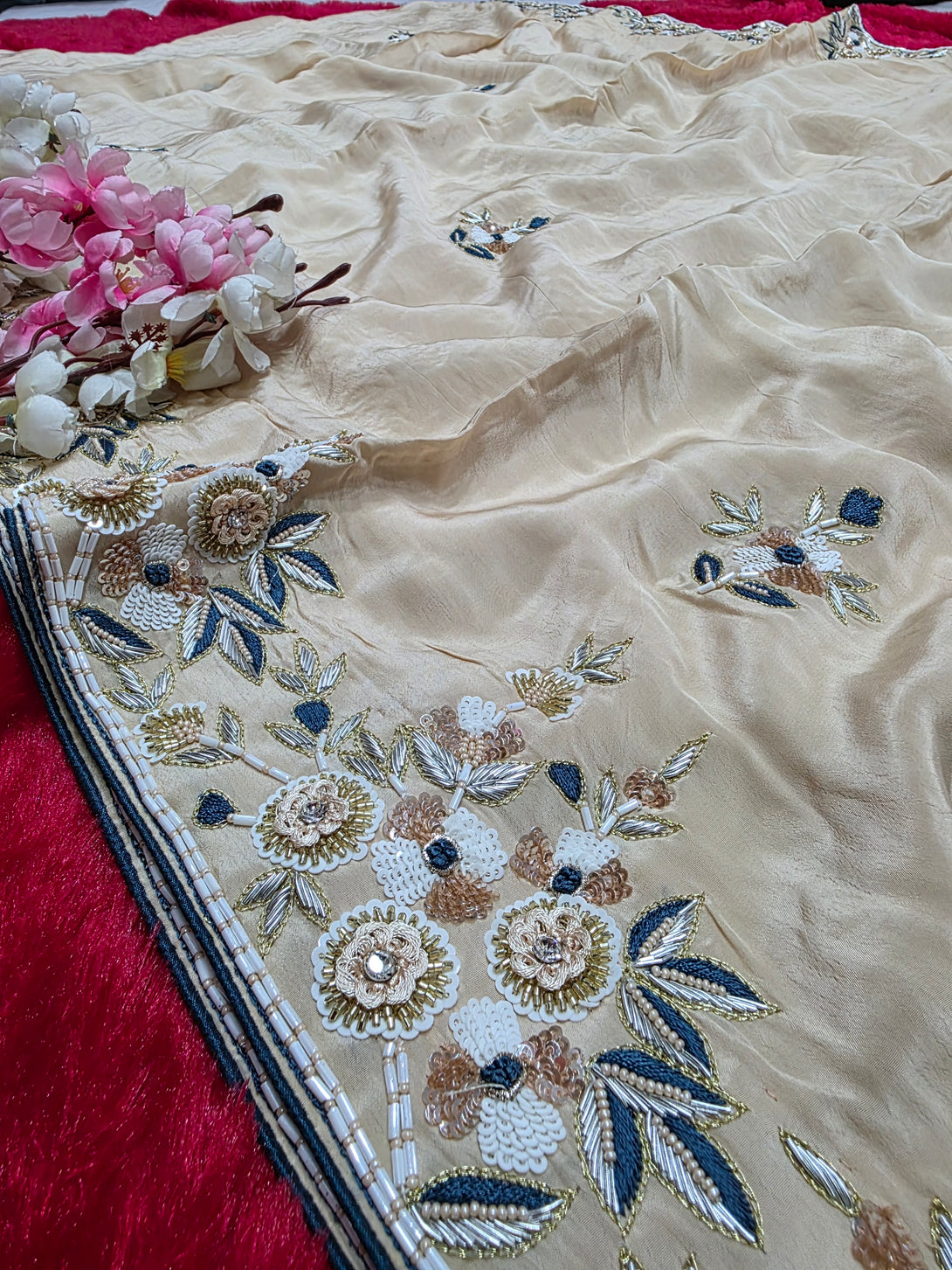 7342 Pure Crepe Silk Beautiful Hand Crafted Designer Chitra Special Saree