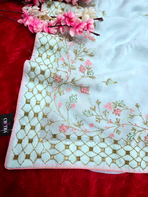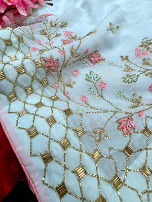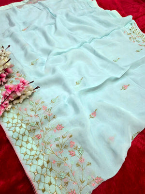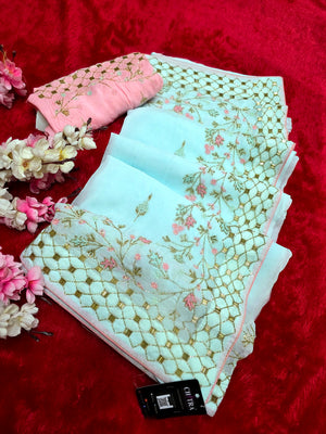 7343 Pure Soft Organza Premium Saree with Very Elegant Hand Cut dana and Zardosi Work