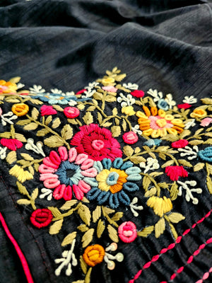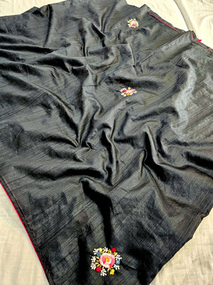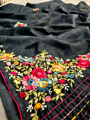 746003 Semi Tusser Silk Hand Made Saree With Premium Suta Work BLACK
