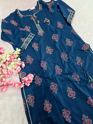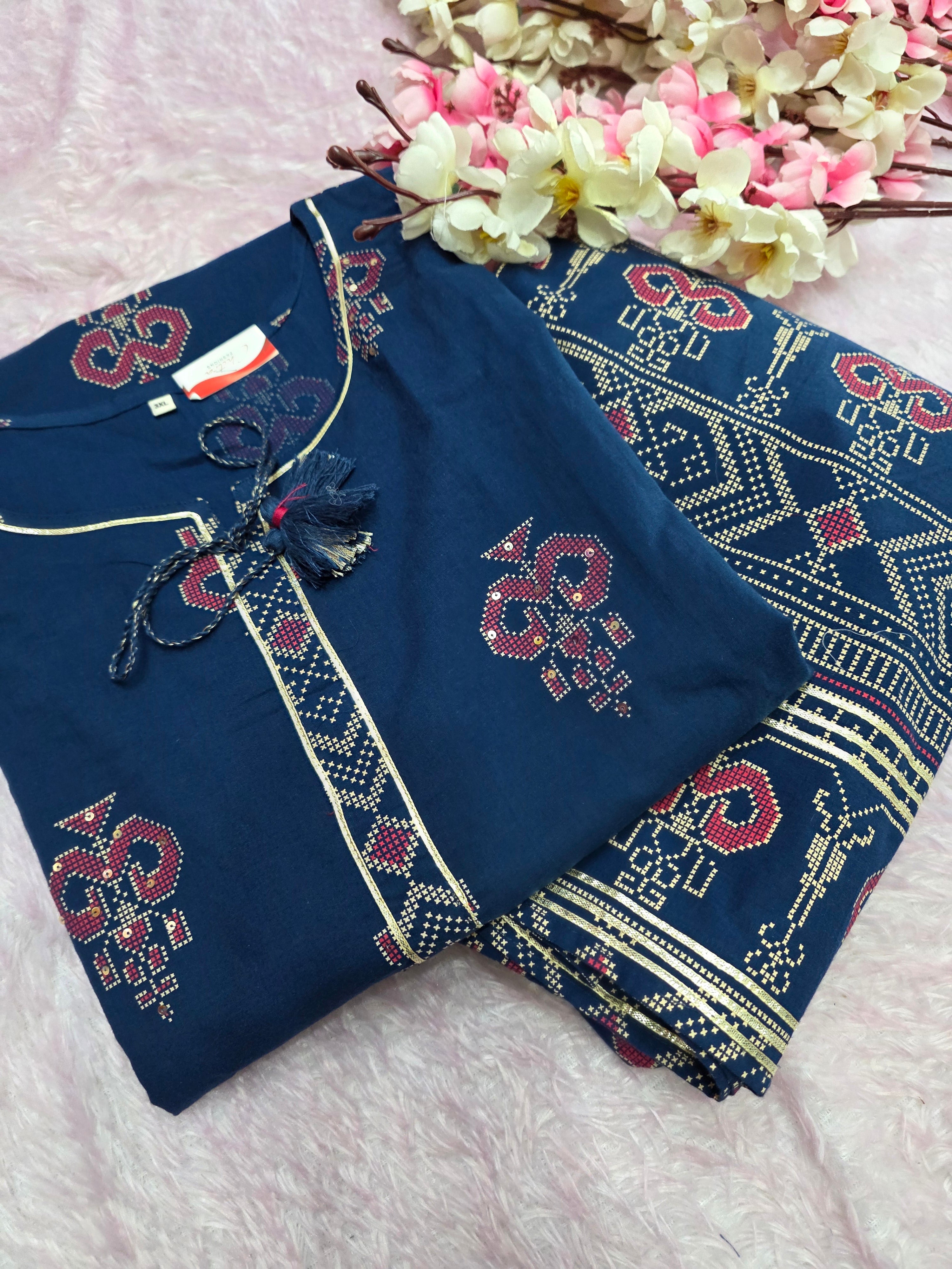 7485 Pure Cotton Straight Printed Cotton Kurti With Printed Skirt