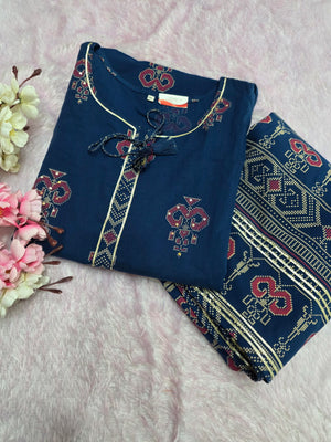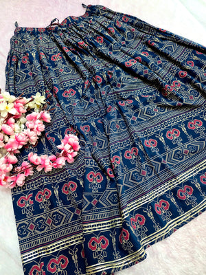 Pure Cotton Straight Digital Print Cotton Kurti With Printed Skirt