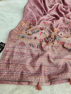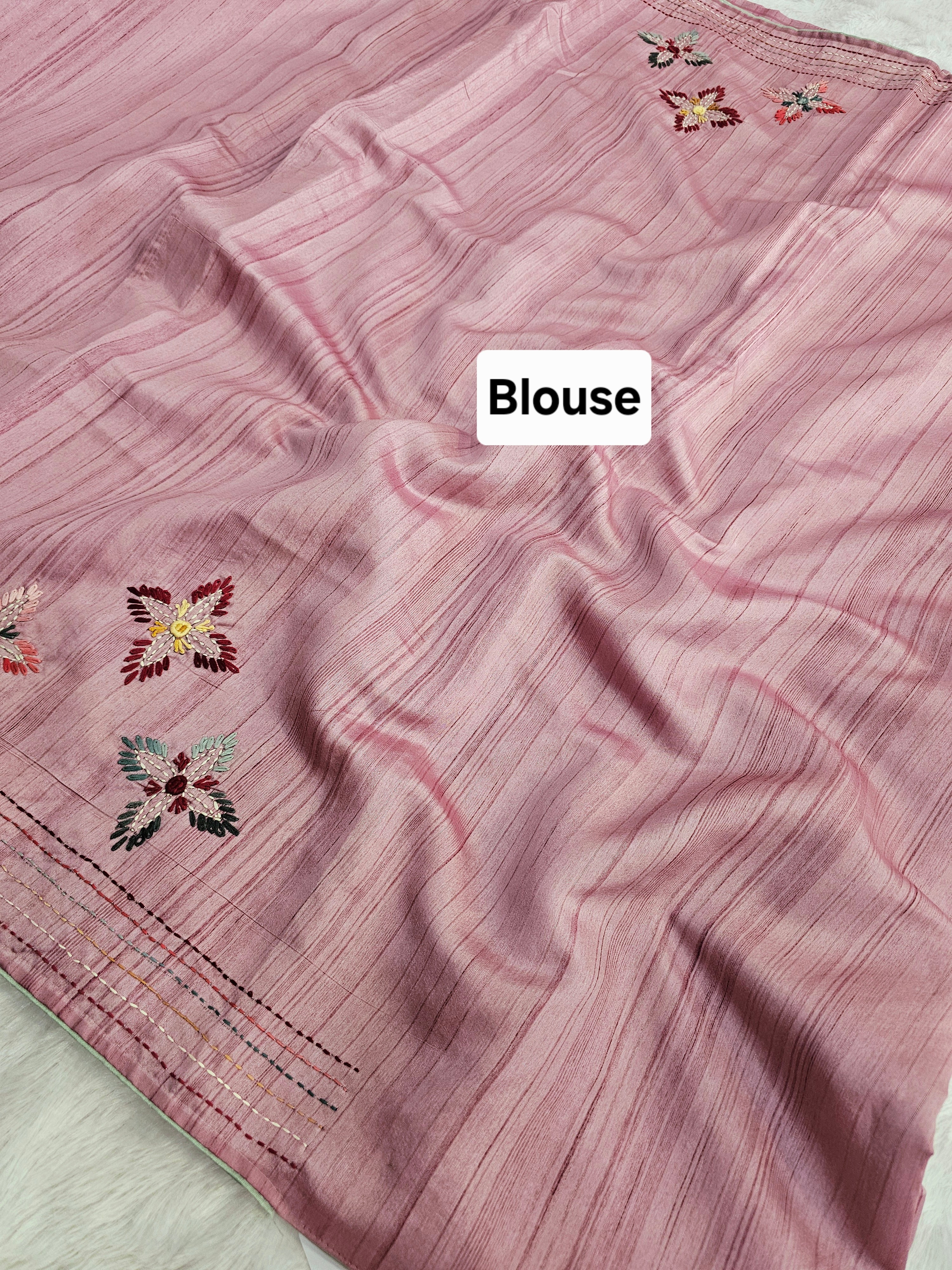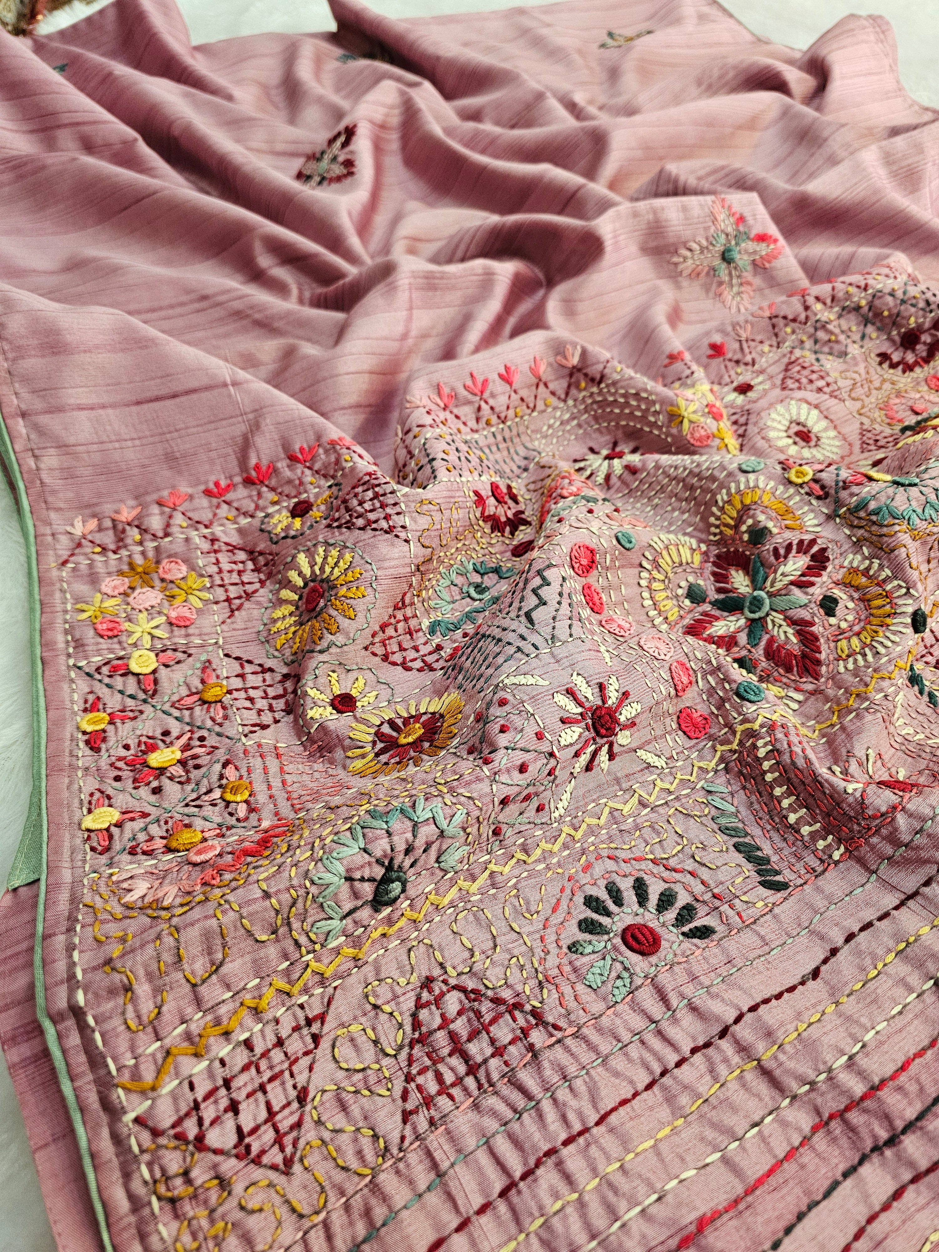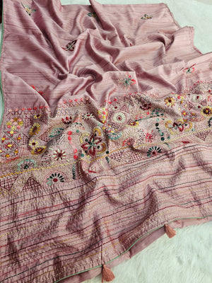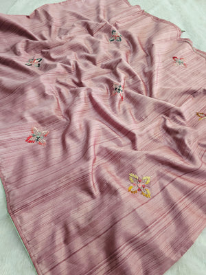 769005 Semi Tusser Silk Hand Made Premium Embroidery Saree