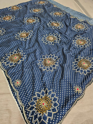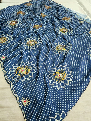 780003 Fancy Designer Semi Party Wear Bandhani Gotta Patti Sarees - blue (665004)