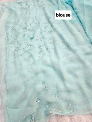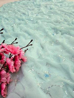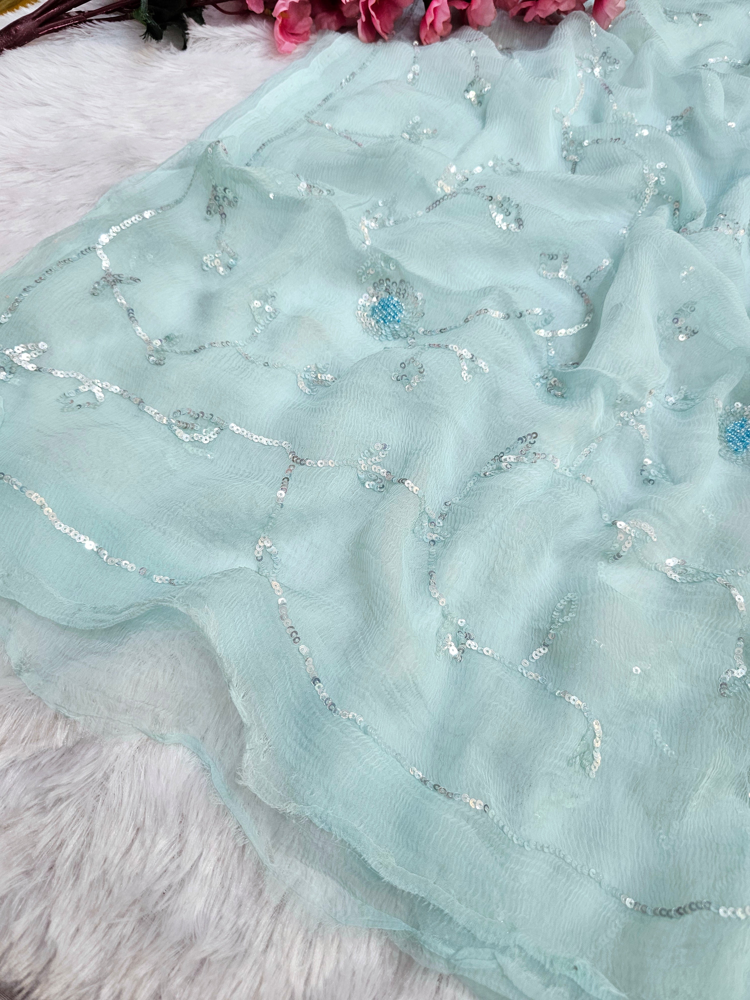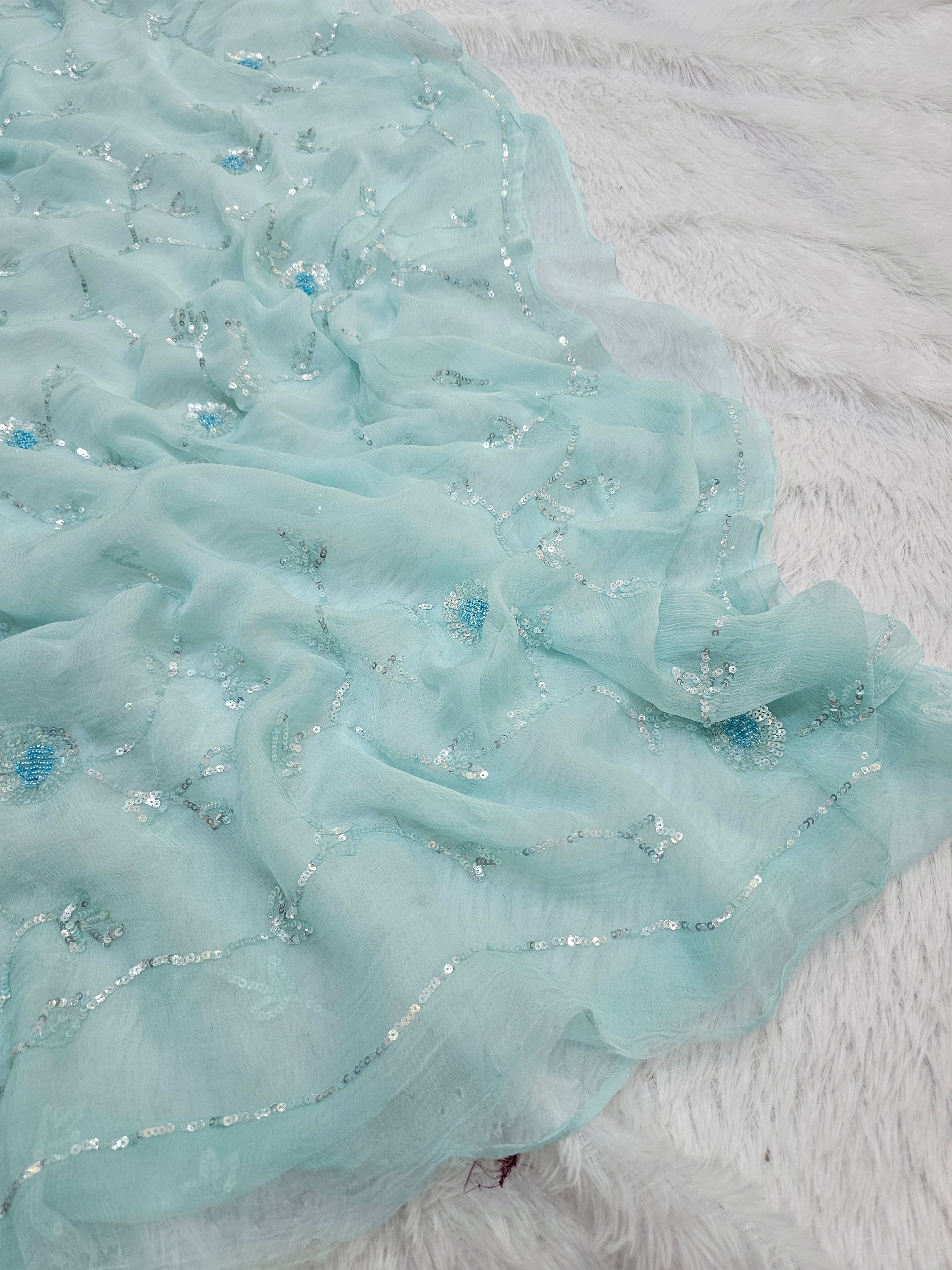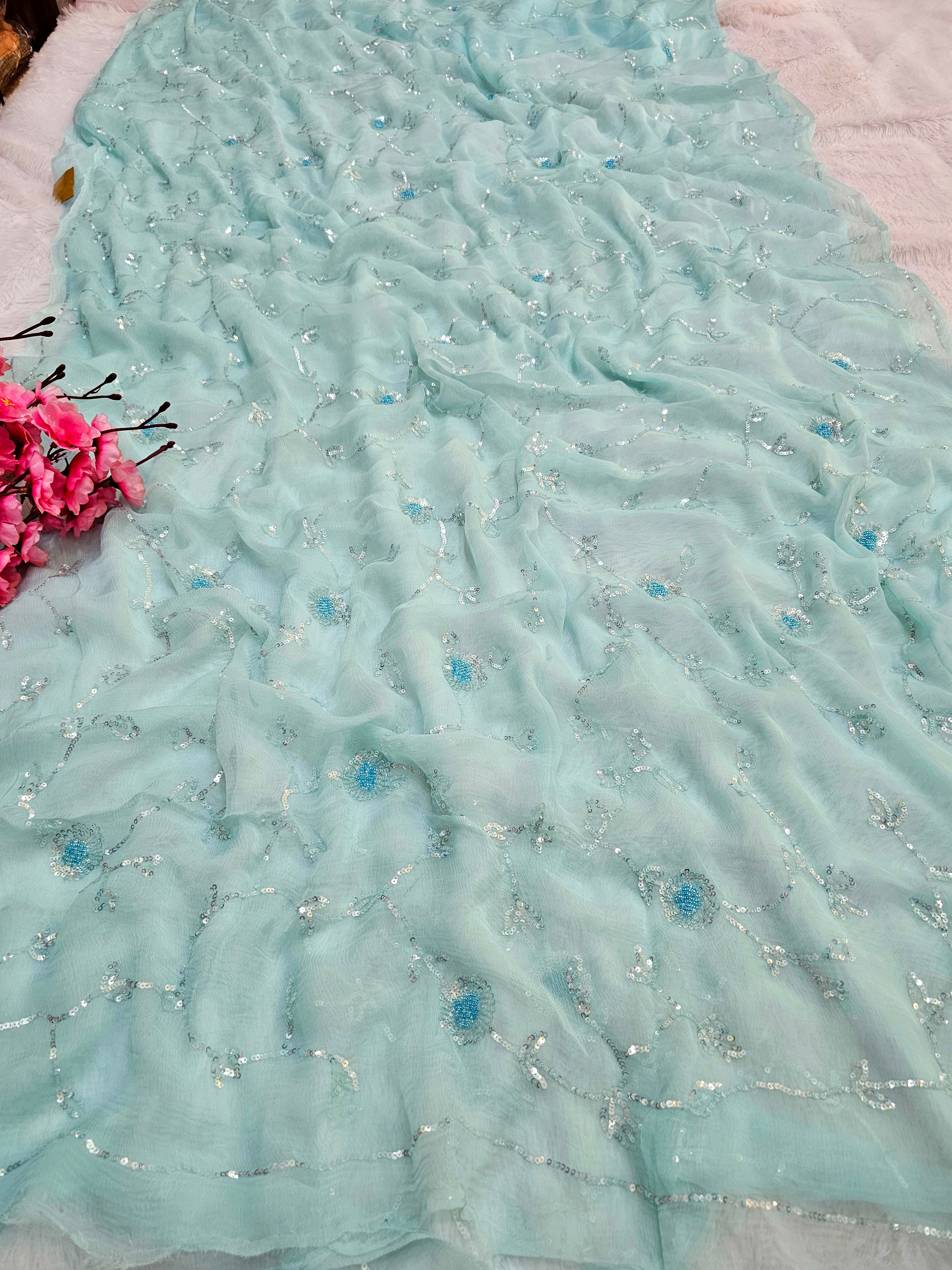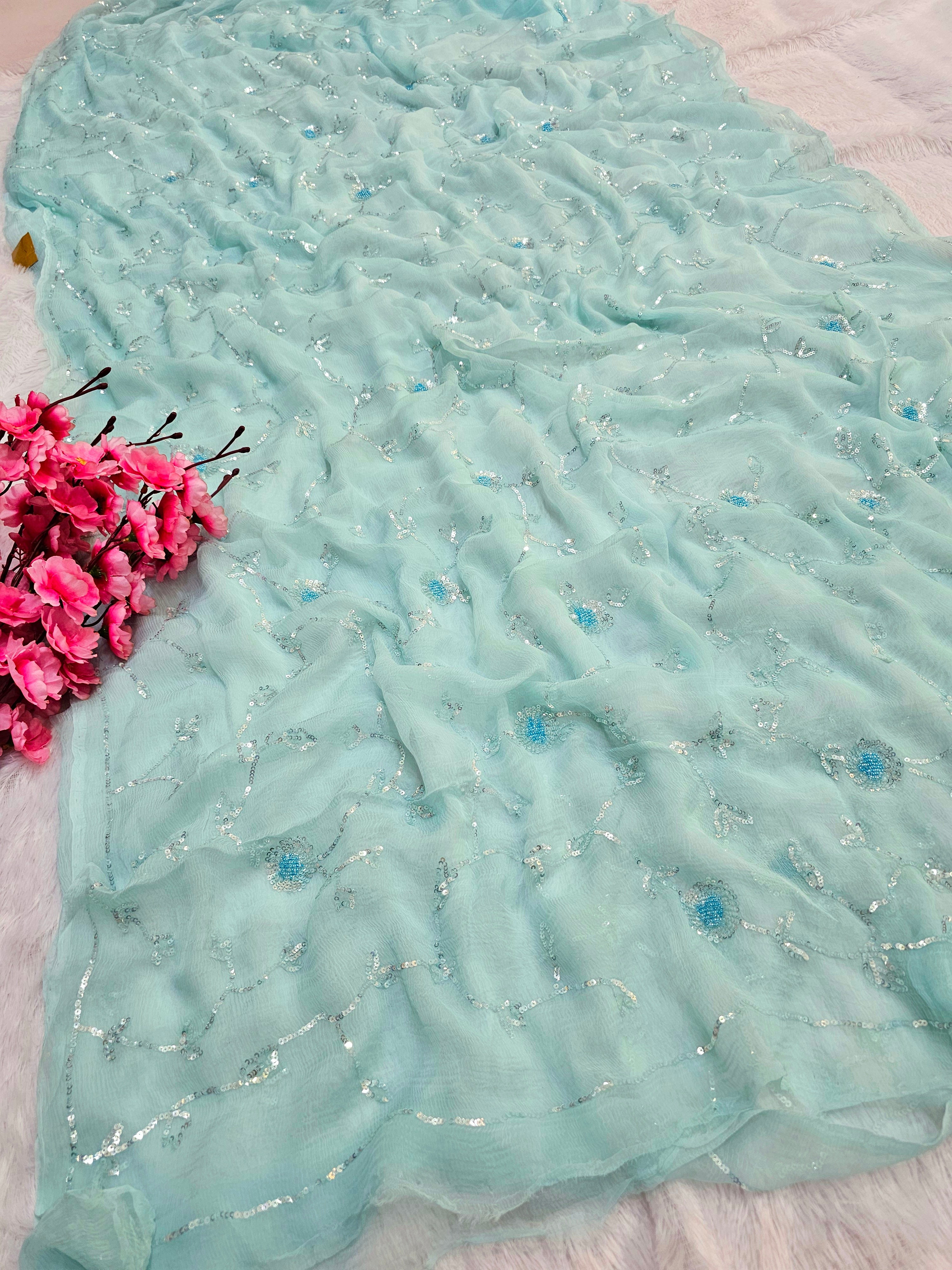 787010 Pure Rajwadi Diamond Chiffon Saree with Heavy Sequence and Beats Handwork (160001 )