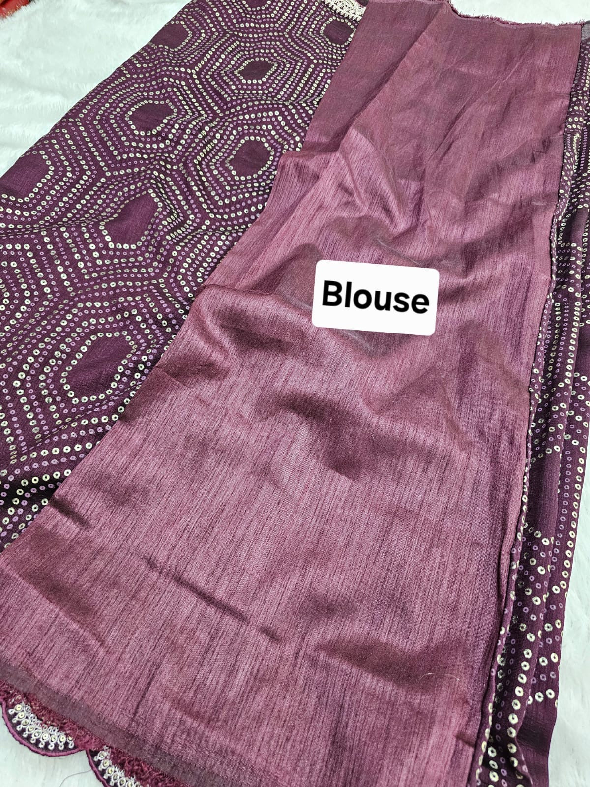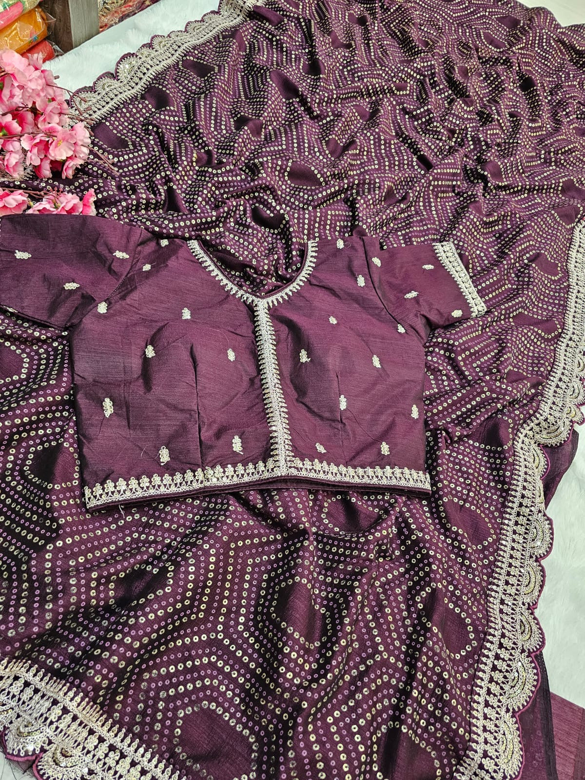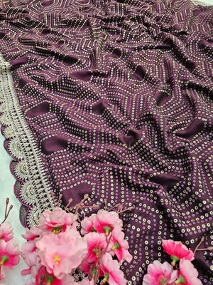 781001 Designer Bandhani Print Dola Silk Saree with Stitched Blouse