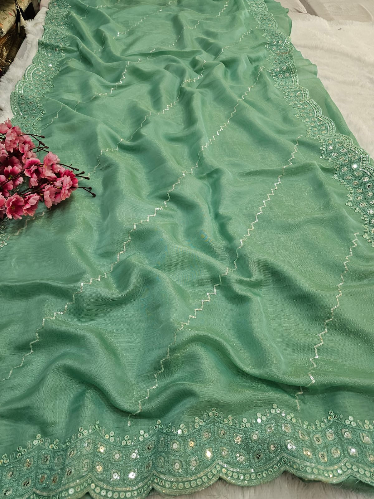 781003 Designer Tissue Silk Saree with Sequence Work