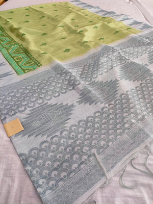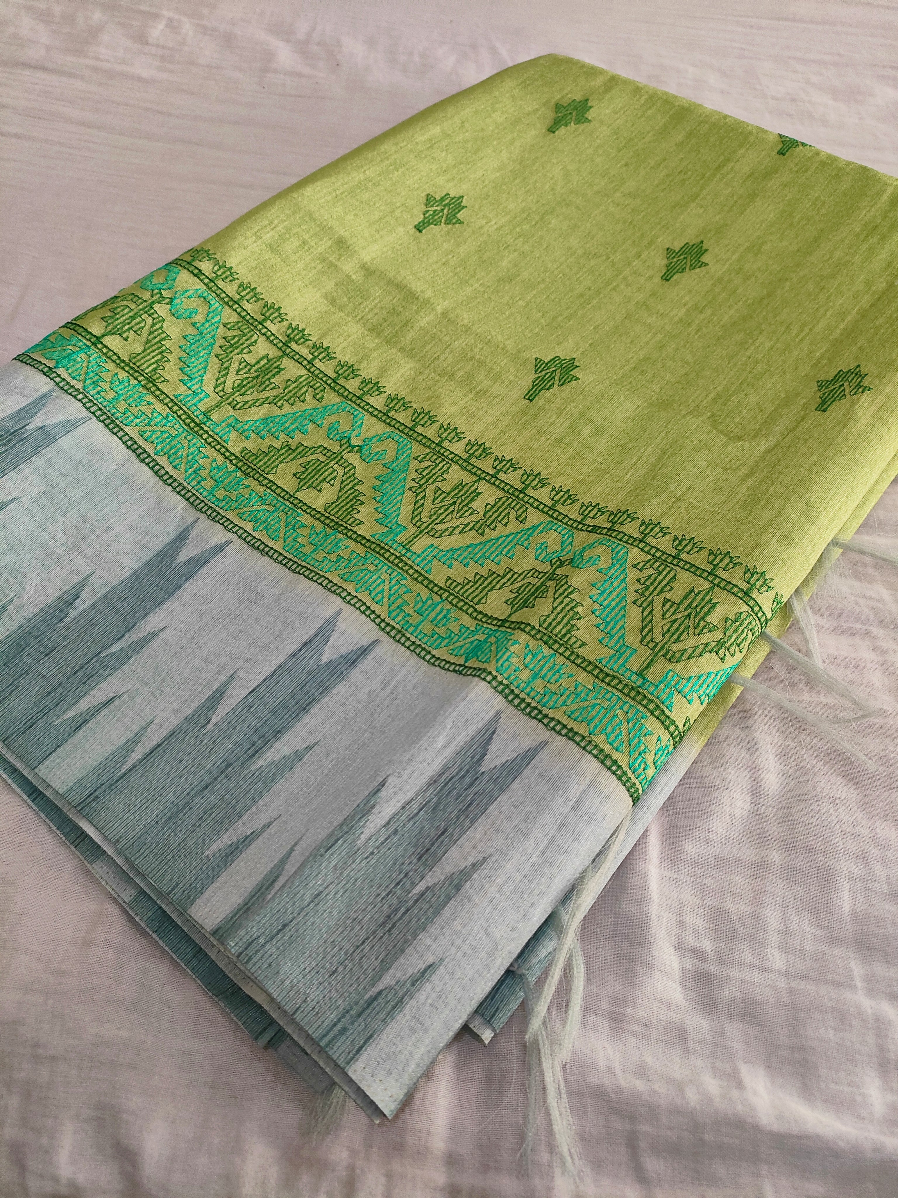 783006 Bhagalpuri Cotton Silk Saree With Embroidery - Green (378001)