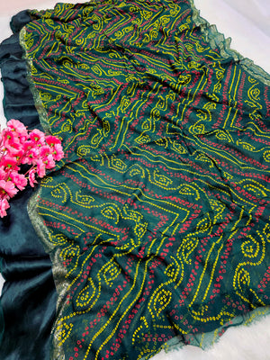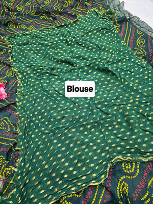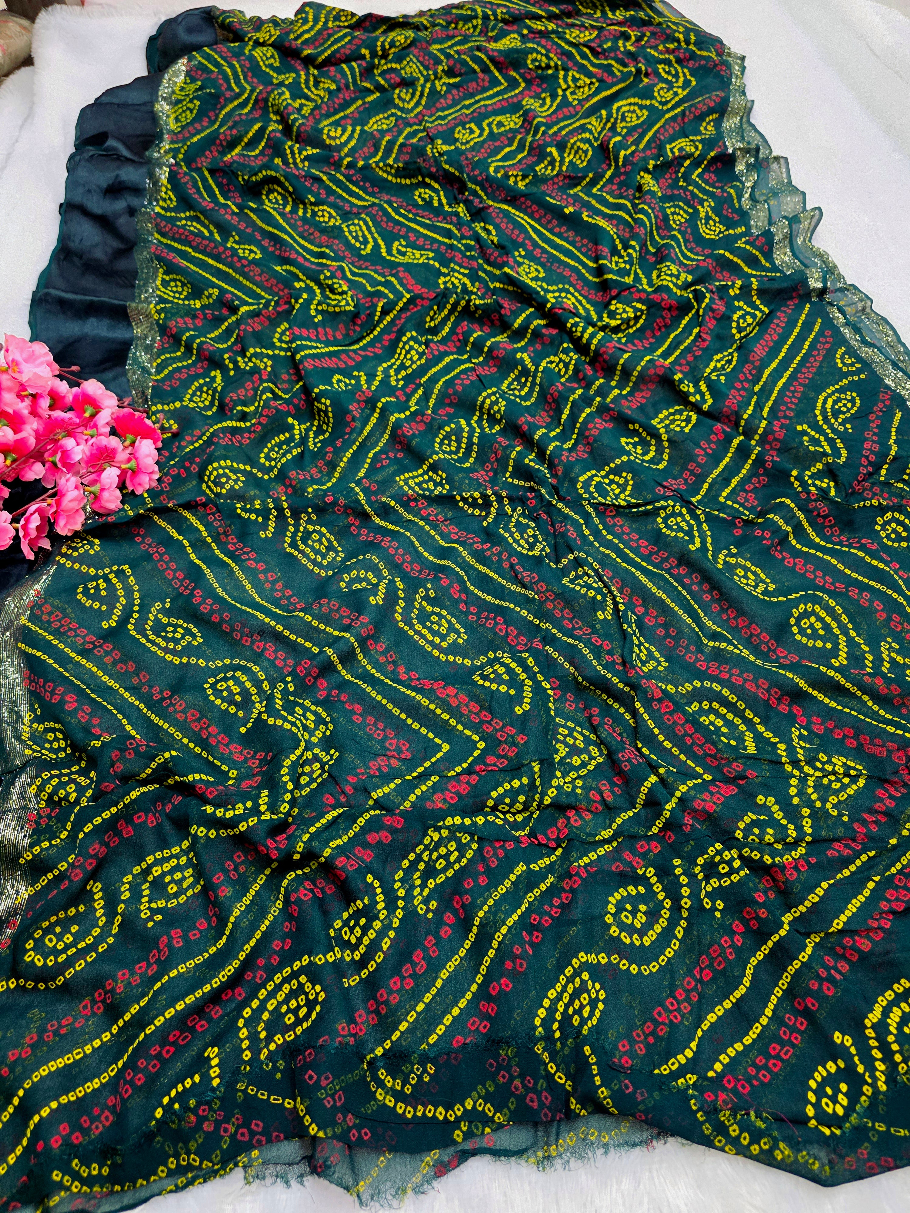 786001 Rajasthani Pure Georgette Bandhani Saree With Satin Border green