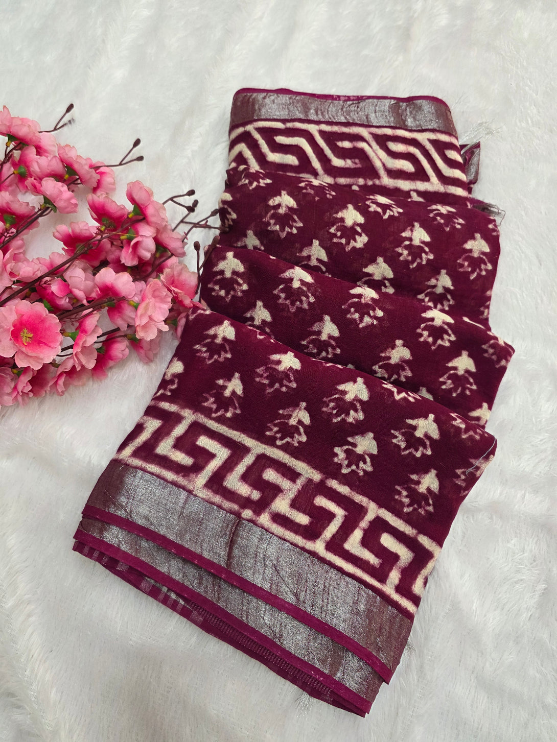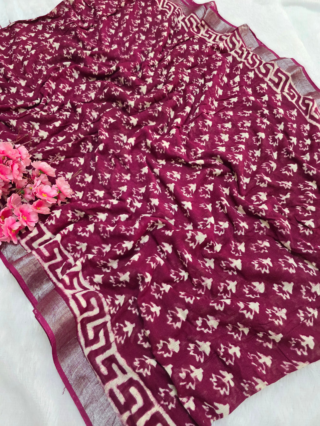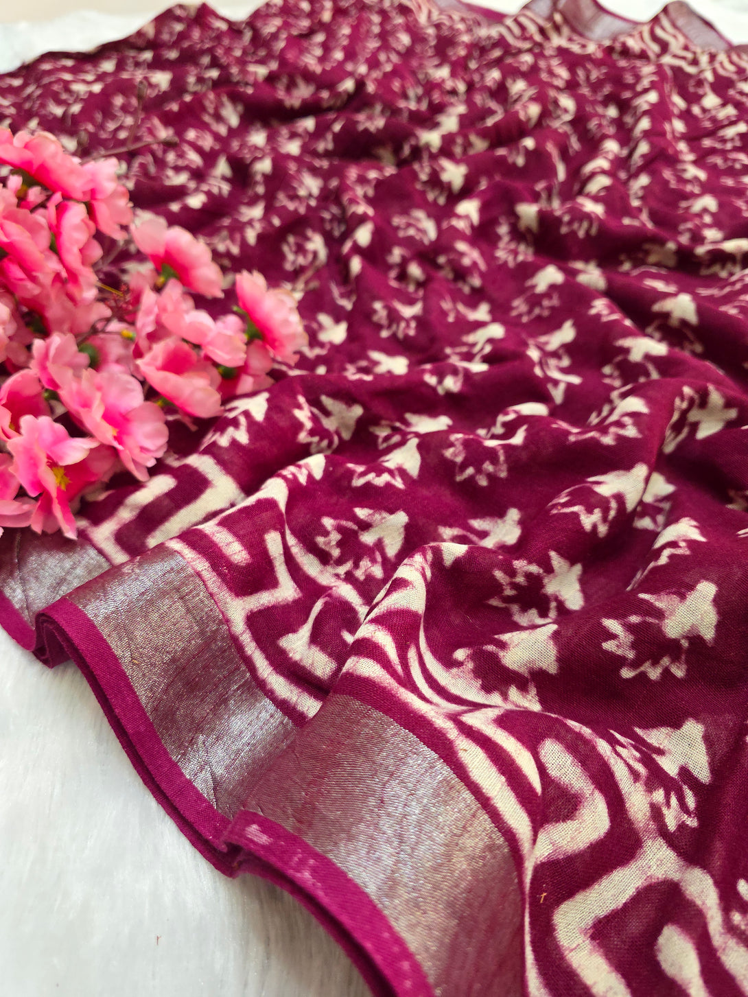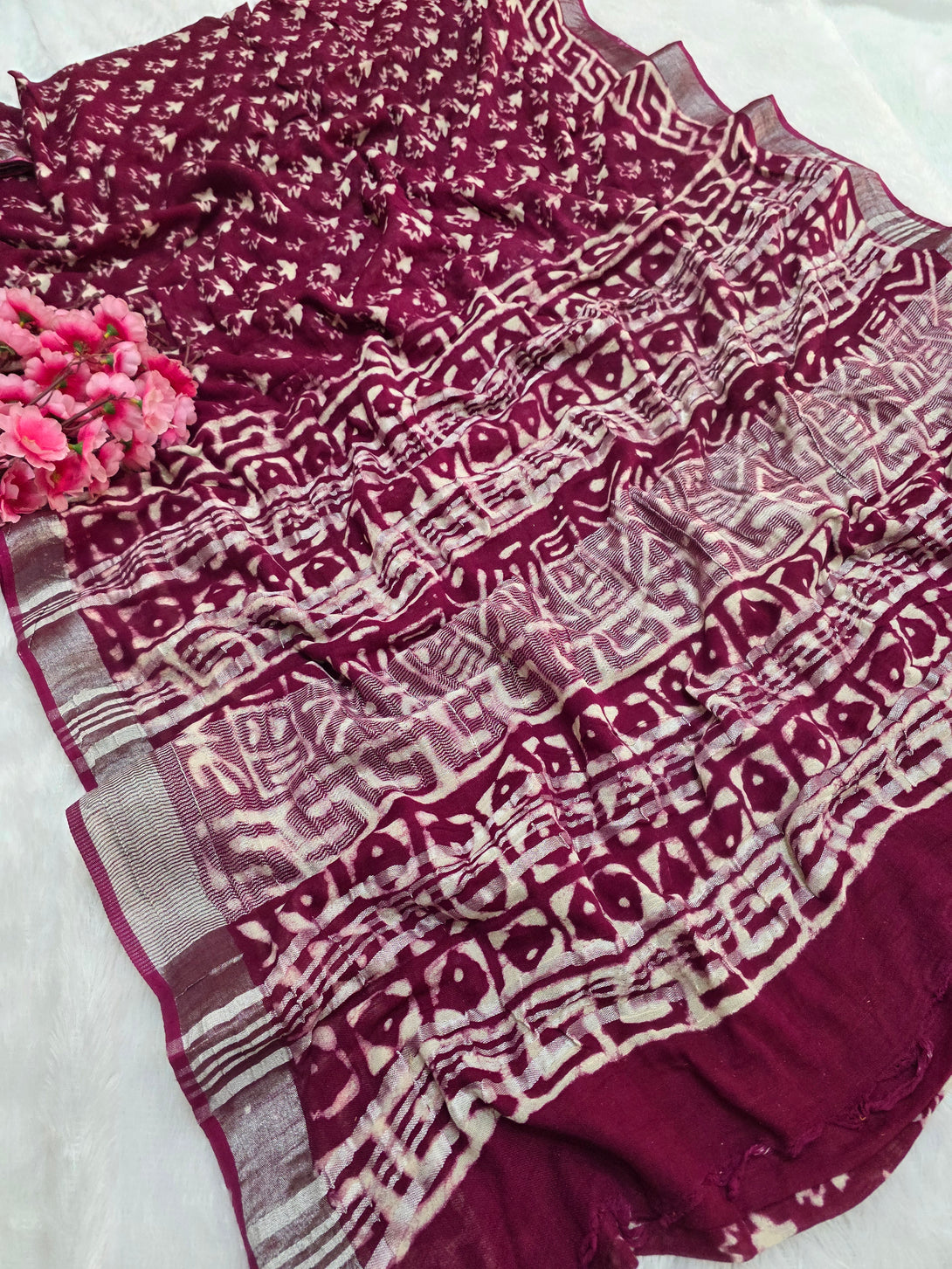 799003 Pure Rajasthani Linen Hand Block Printed Saree