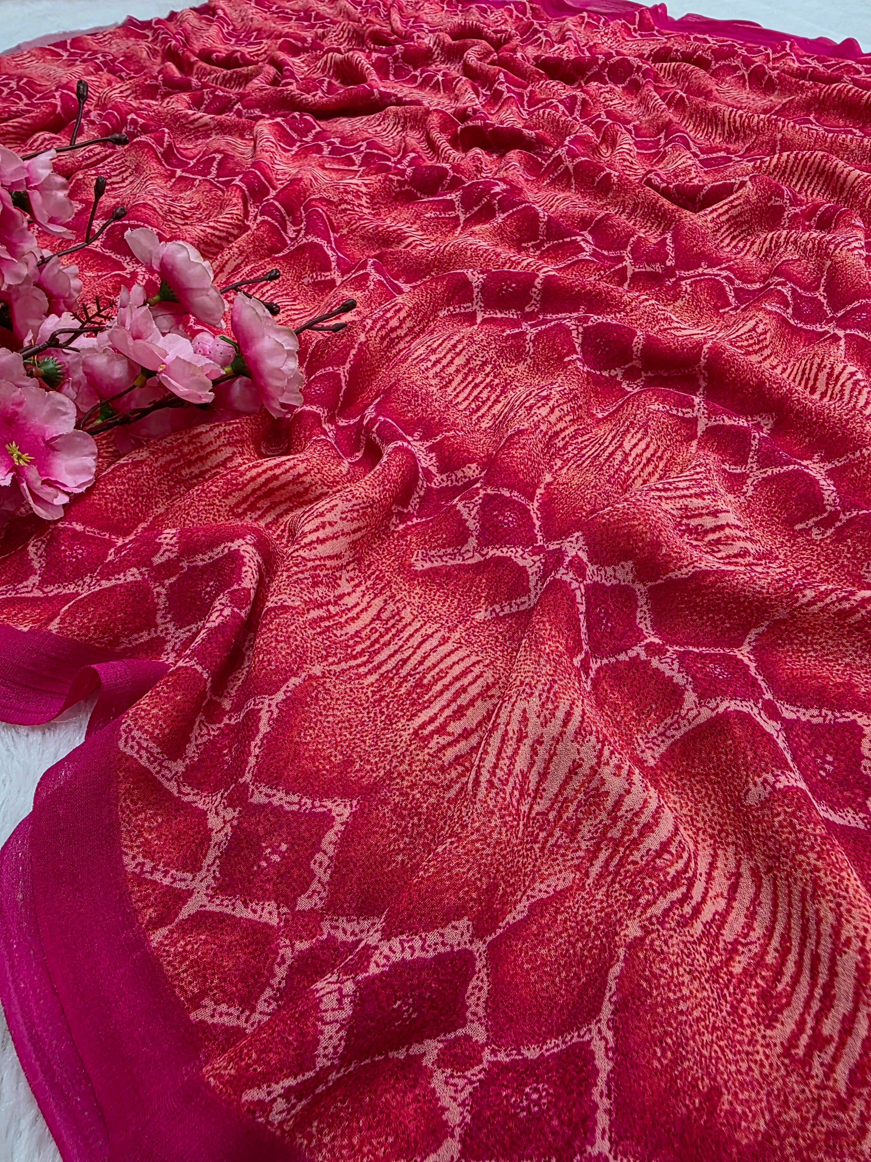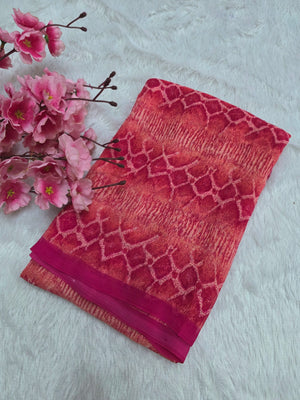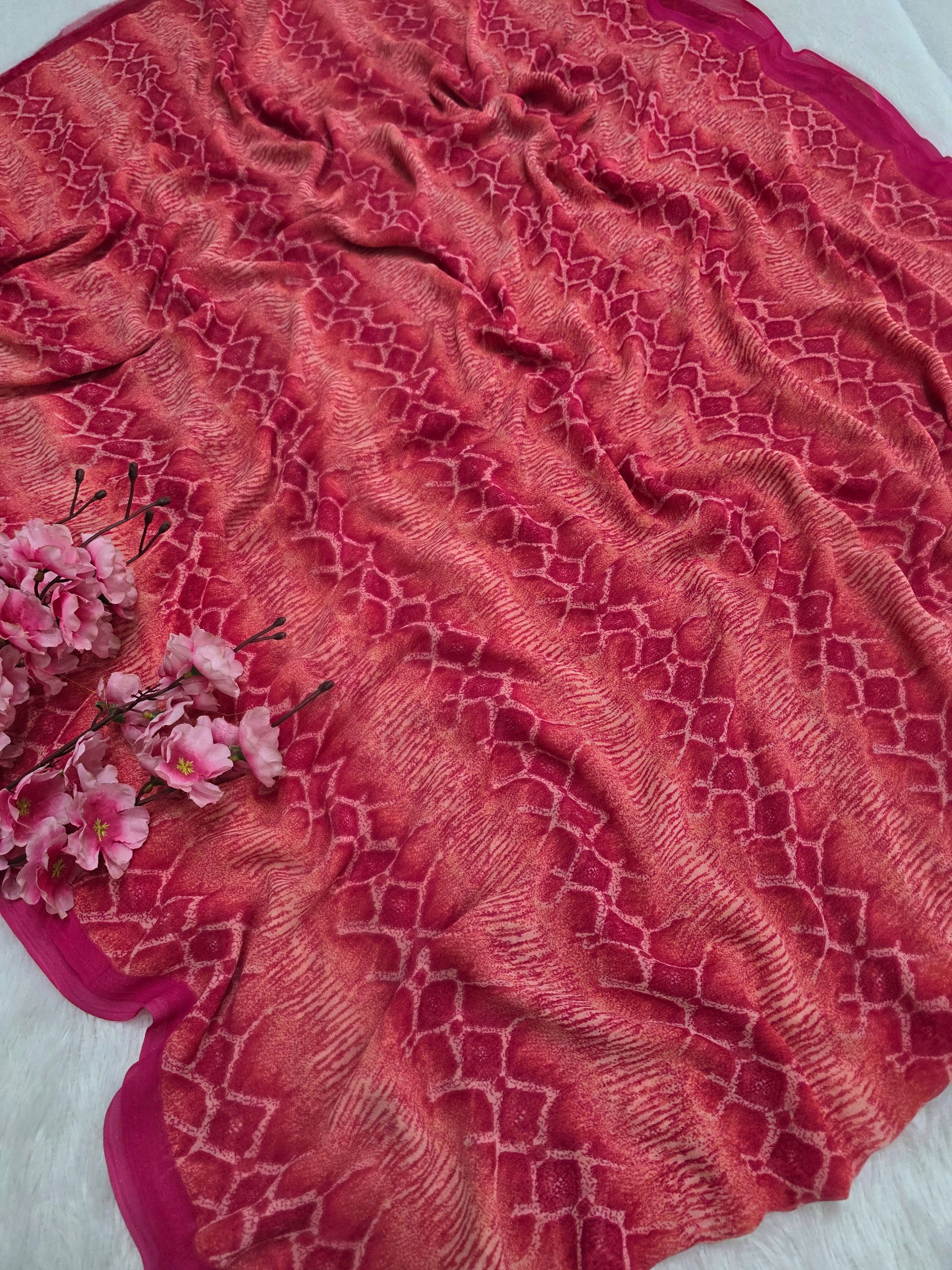 810009 Designer Digital Print Georgette Saree - Pink