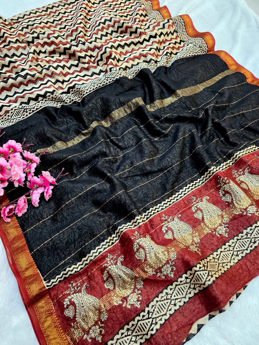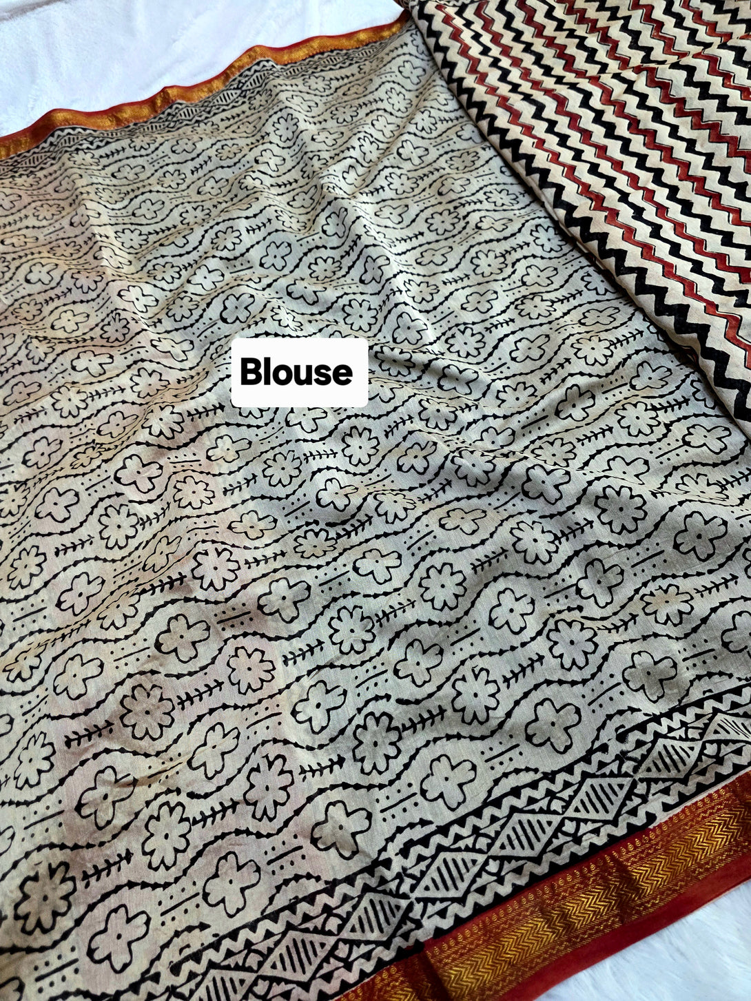 813005 Pure Maheshwari Cotton Silk Handblocked Printed Saree -