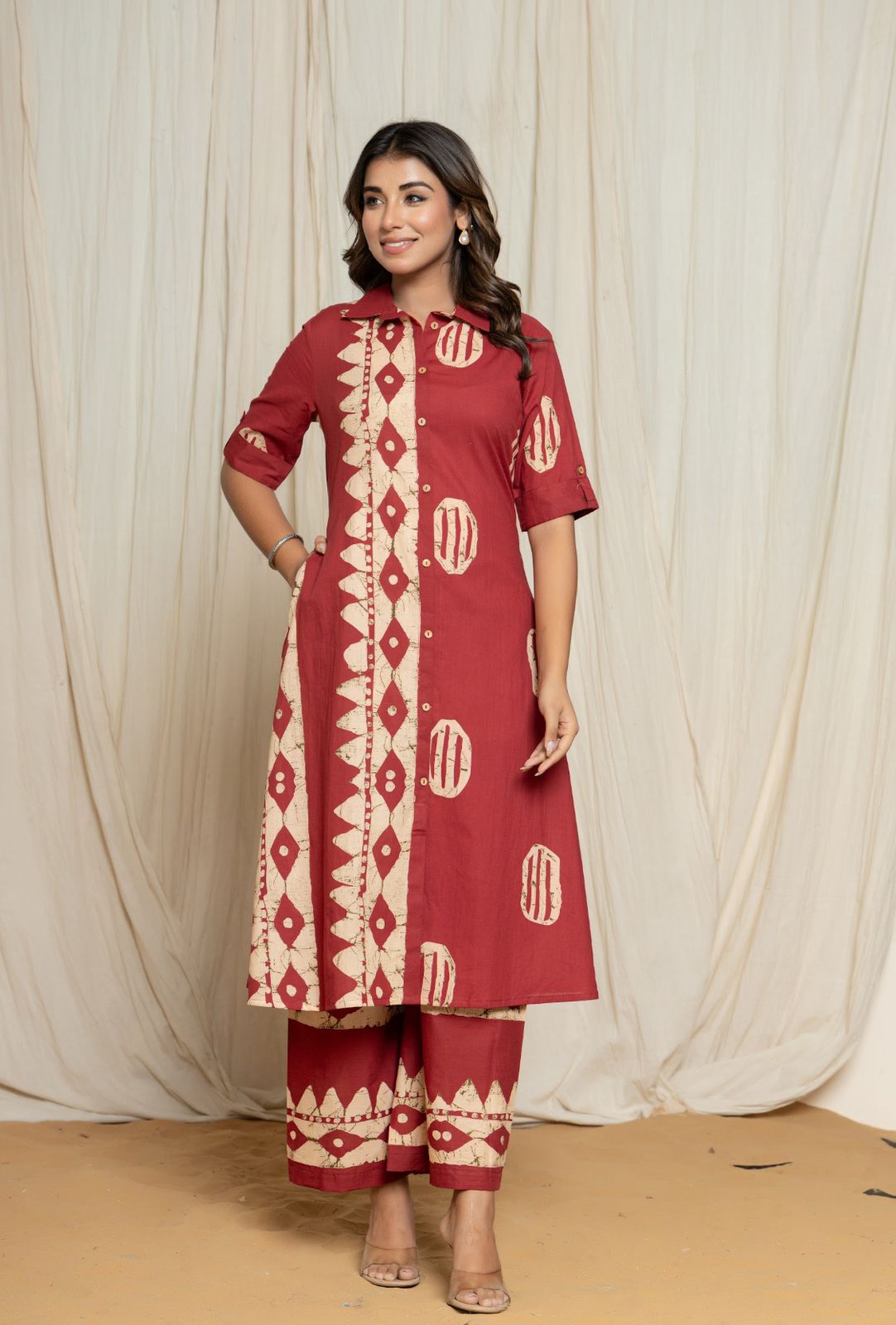 Pure Cotton Straight Ajrakh Print Cotton Kurti WIth Pant and Dupatta