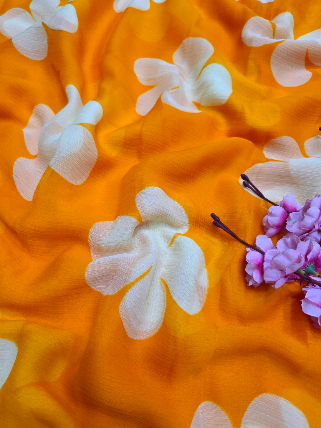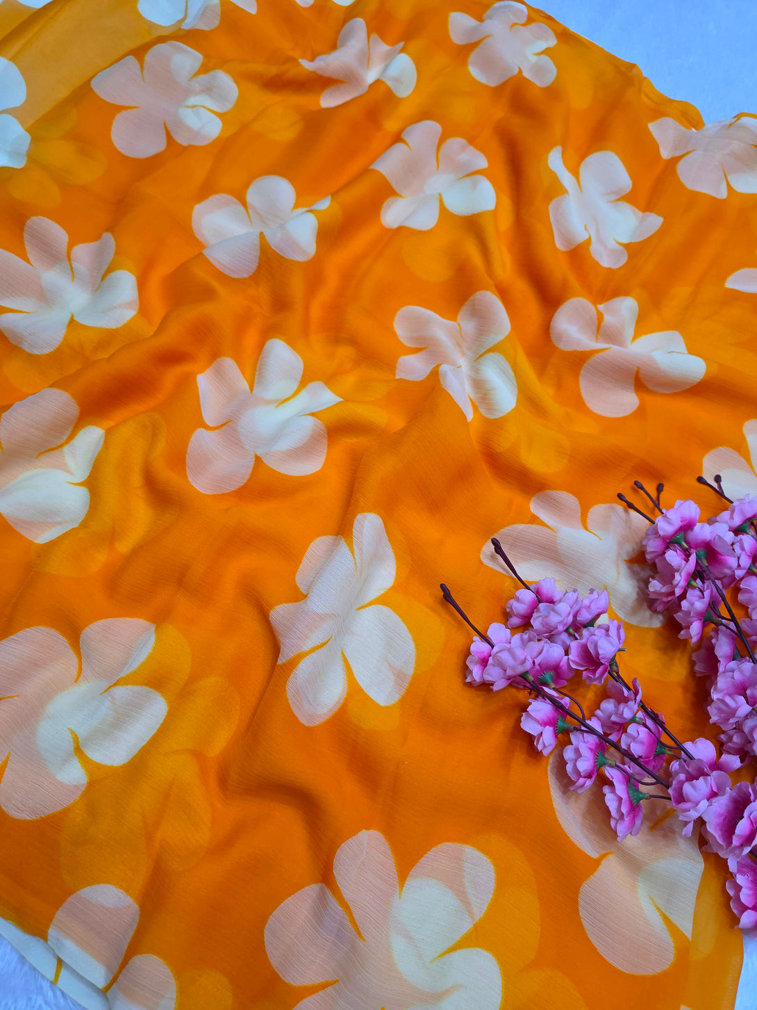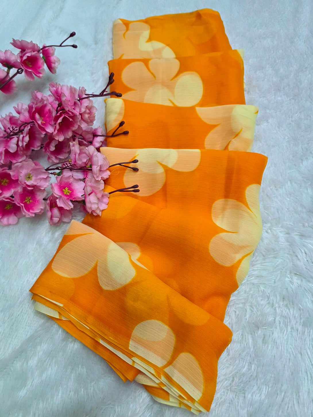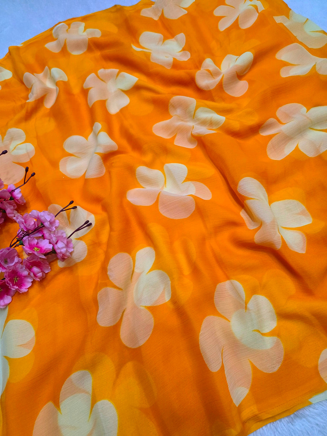 845001 Lightweight Elegant Semi Chiffon Flower Print Saree - Orange