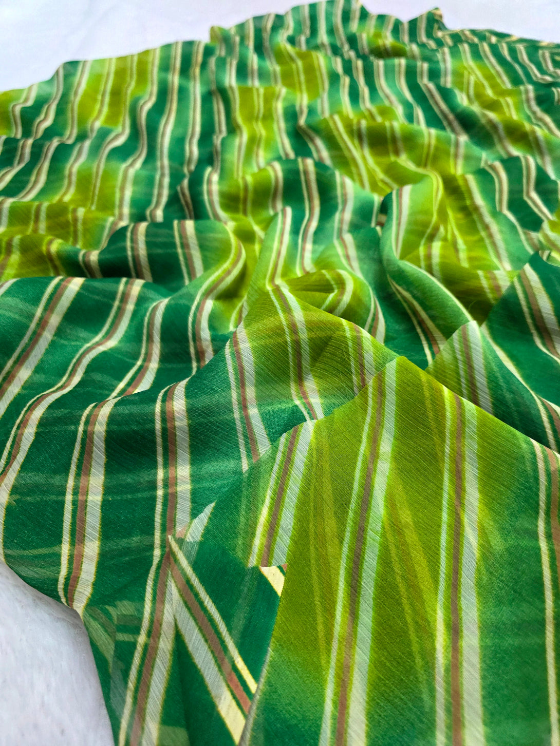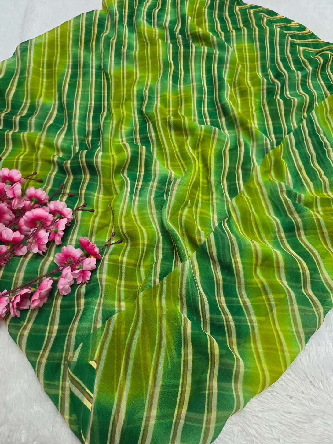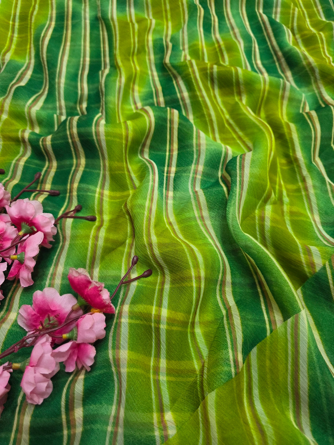 845002 Lightweight Elegant Semi Chiffon Lehariya Print Shaded Saree - Green