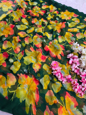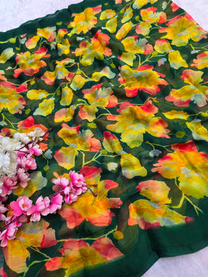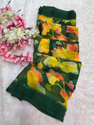 852001 Lightweight Elegant Semi Chiffon Flower Print Saree - Green