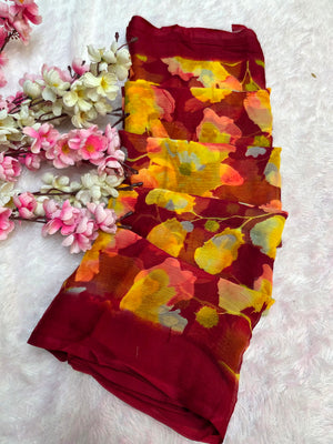 852001 Lightweight Elegant Semi Chiffon Flower Print Saree - Maroon