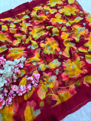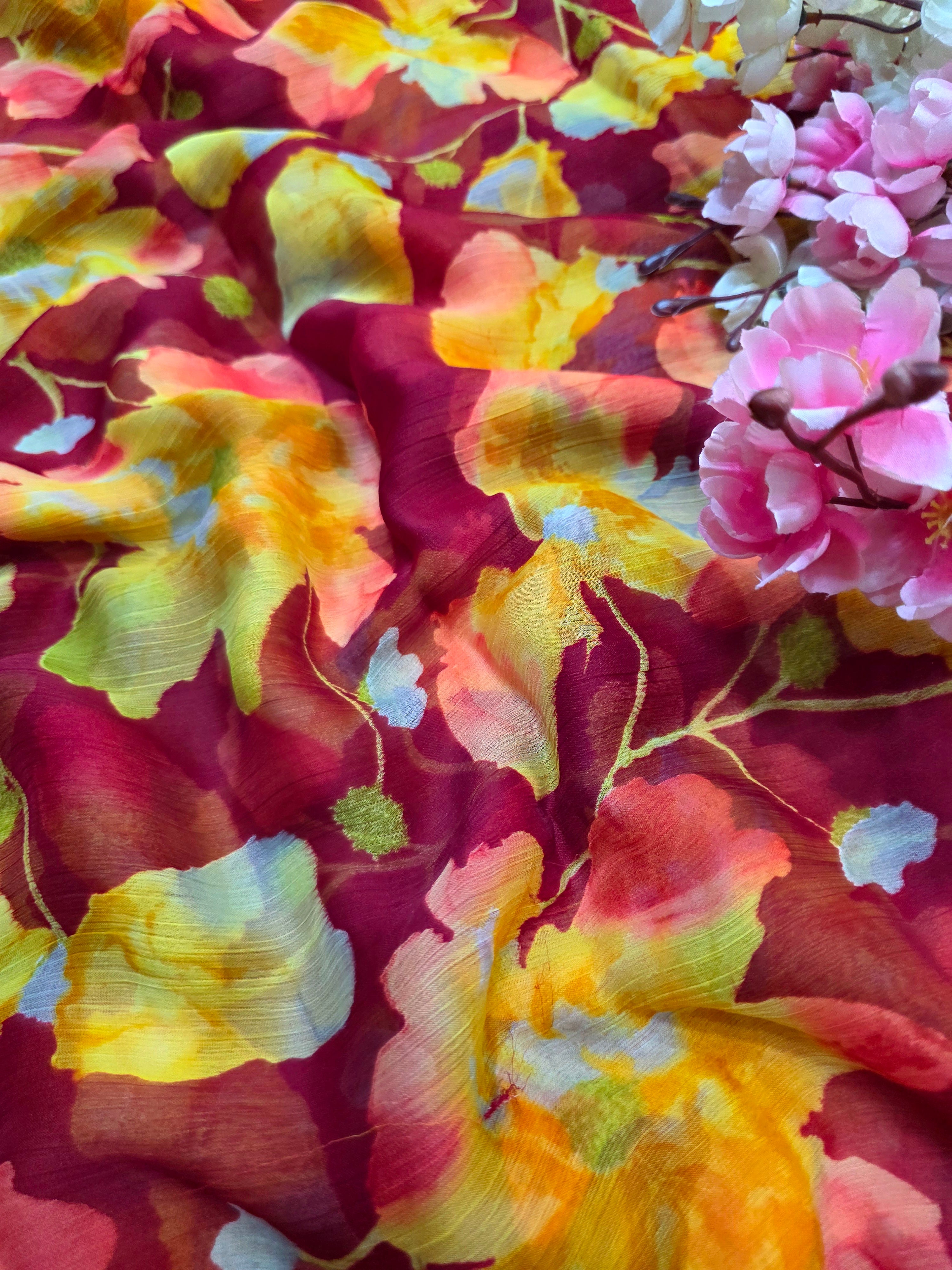 Flower Print Semi-Chiffon Saree Without Blouse – Perfect Blend of Elegance and Comfort