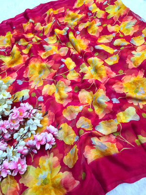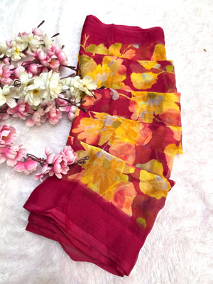 852001 Lightweight Elegant Semi Chiffon Flower Print Saree - Rani