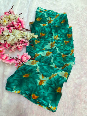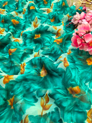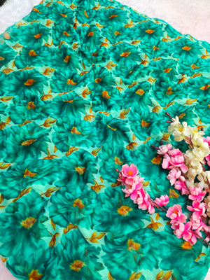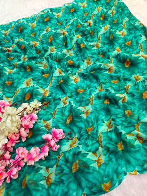 852003 Lightweight Elegant Semi Chiffon Flower Print Saree - Teal Green