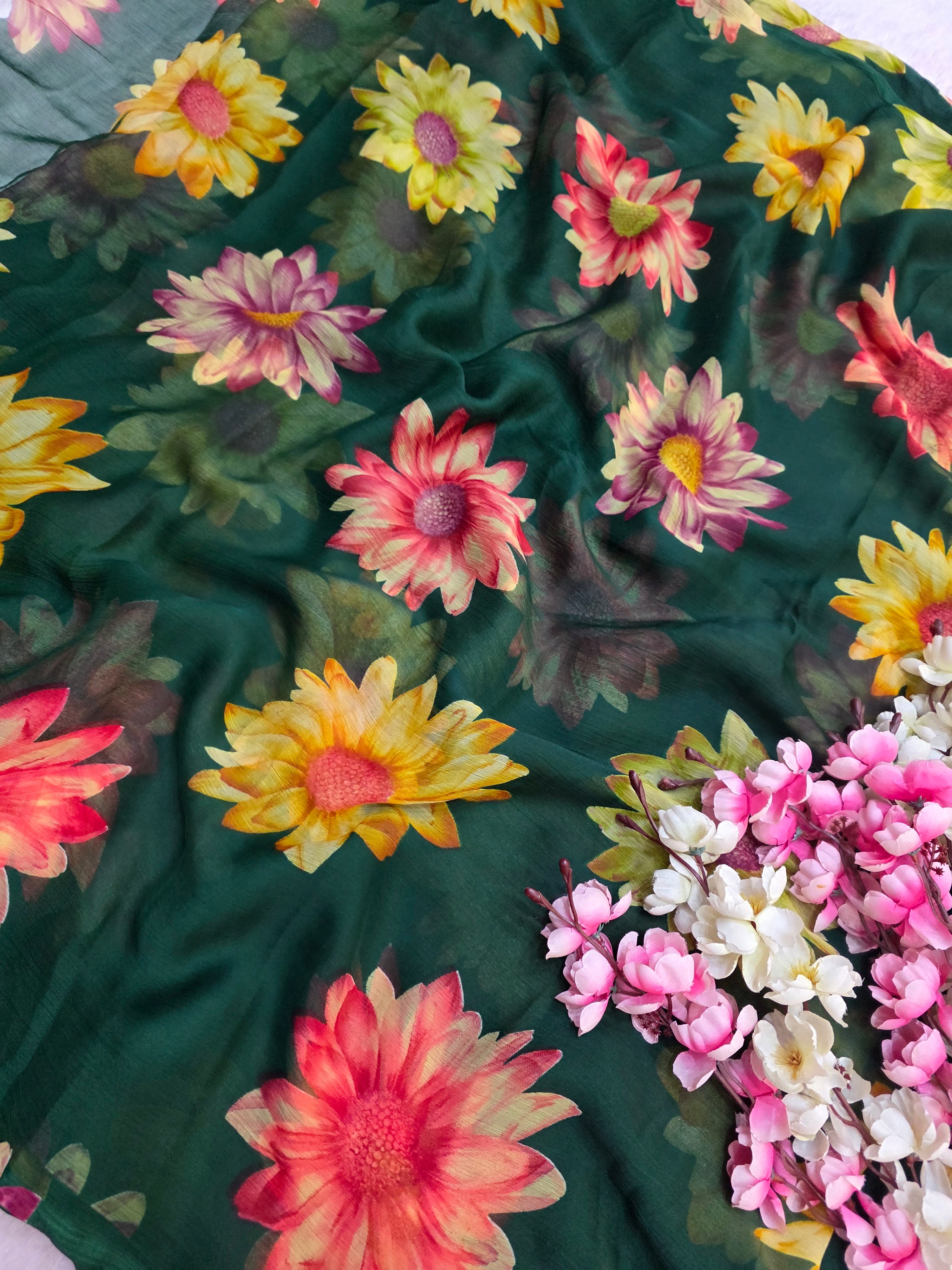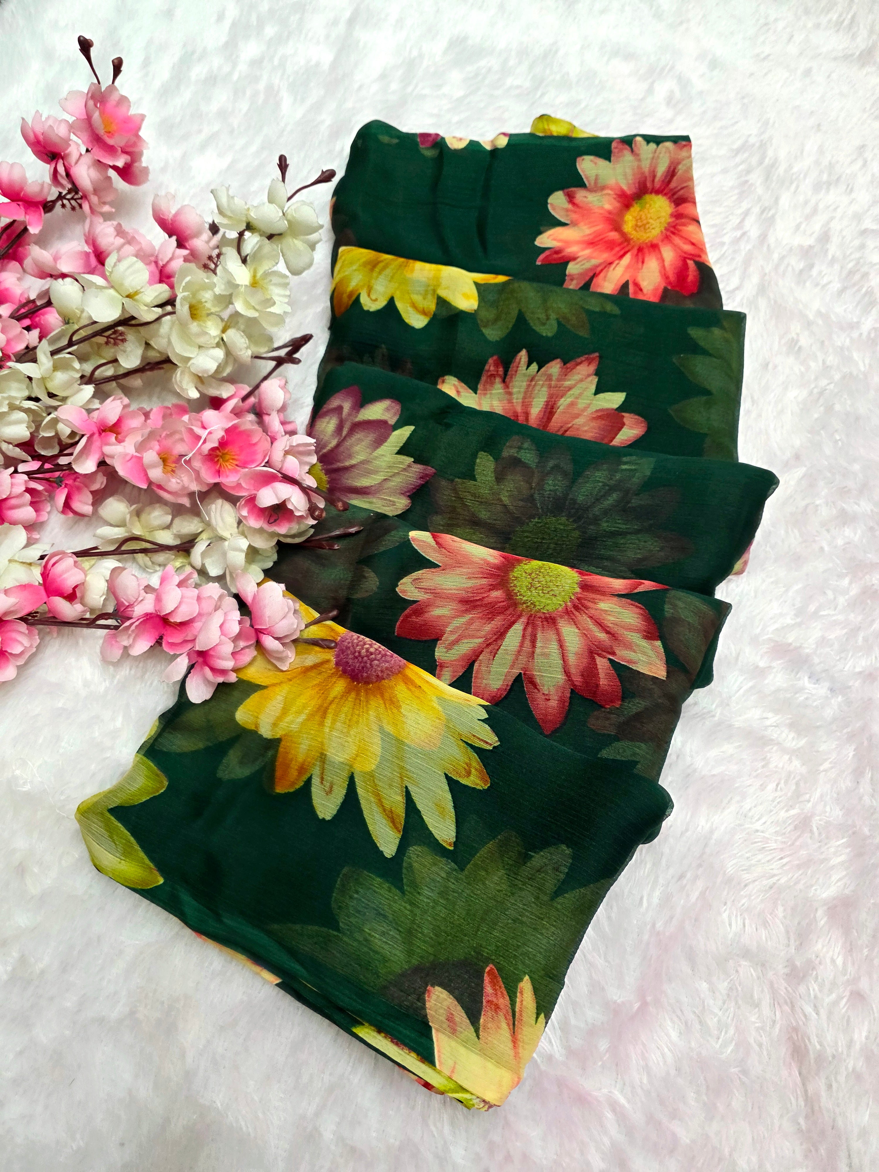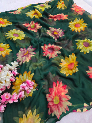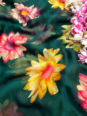852004 Lightweight Elegant Semi Chiffon Flower Print Saree - Green
