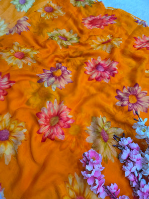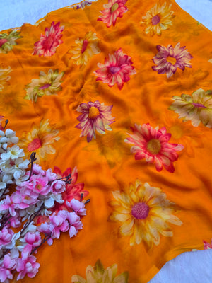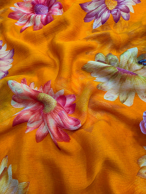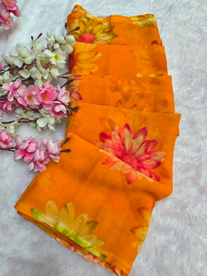 852004 Lightweight Elegant Semi Chiffon Flower Print Saree - Orange