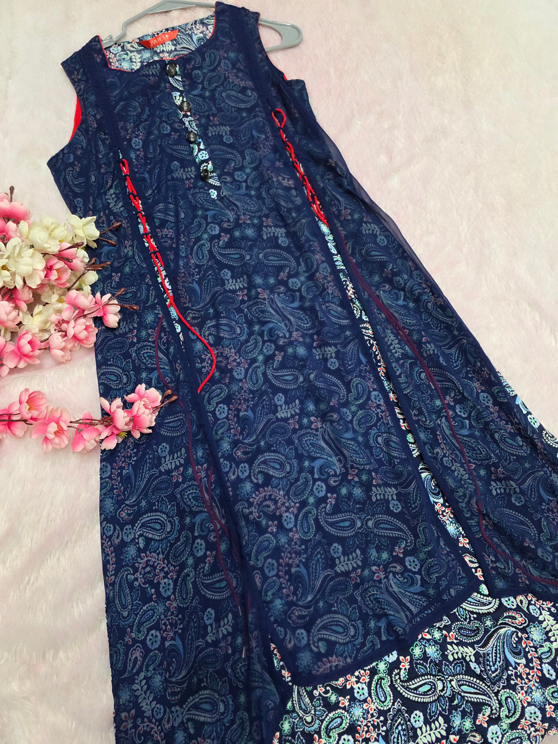 864011 Juliet Brand Designer Straight Kurti with Sleaves Inside - Blue