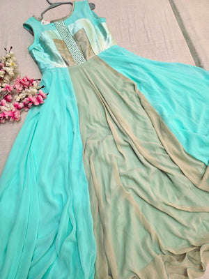 869001 Designer Georgette Party Wear Sky Blue Gown