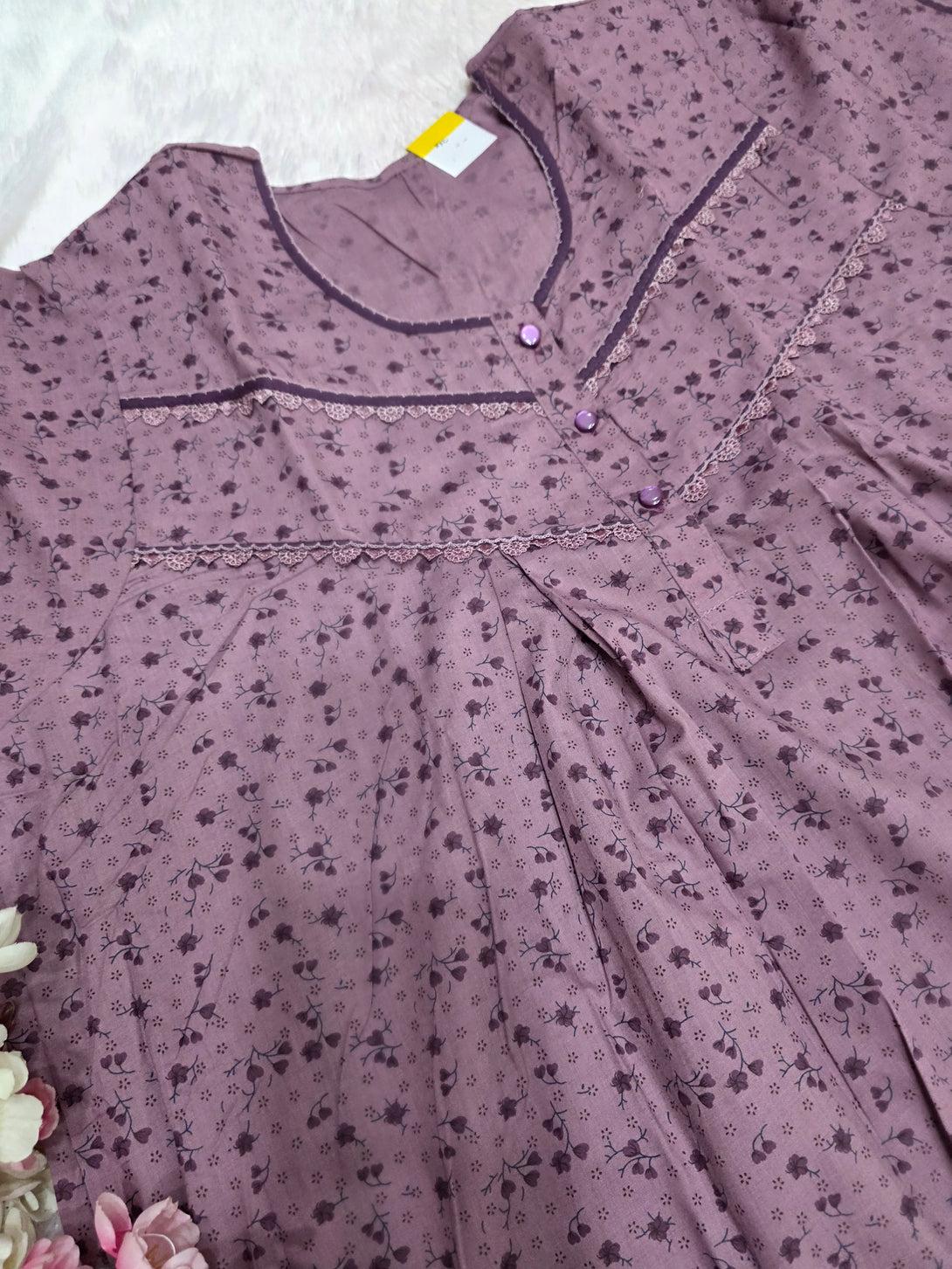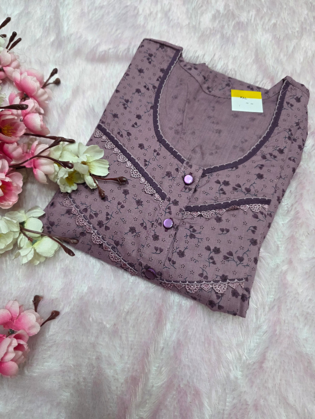 888011 Very Soft And Comfortable Night Gown with One Side Pocket - Wine