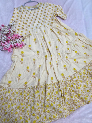 • Highlight : Pure Cotton Flower Print A-line Long Kurti