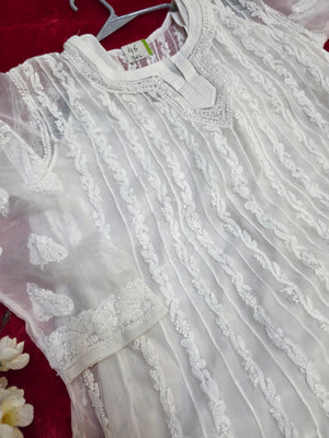 889011 Exclusive Chikankari Work Anarkali Georgette Kurti With Inner