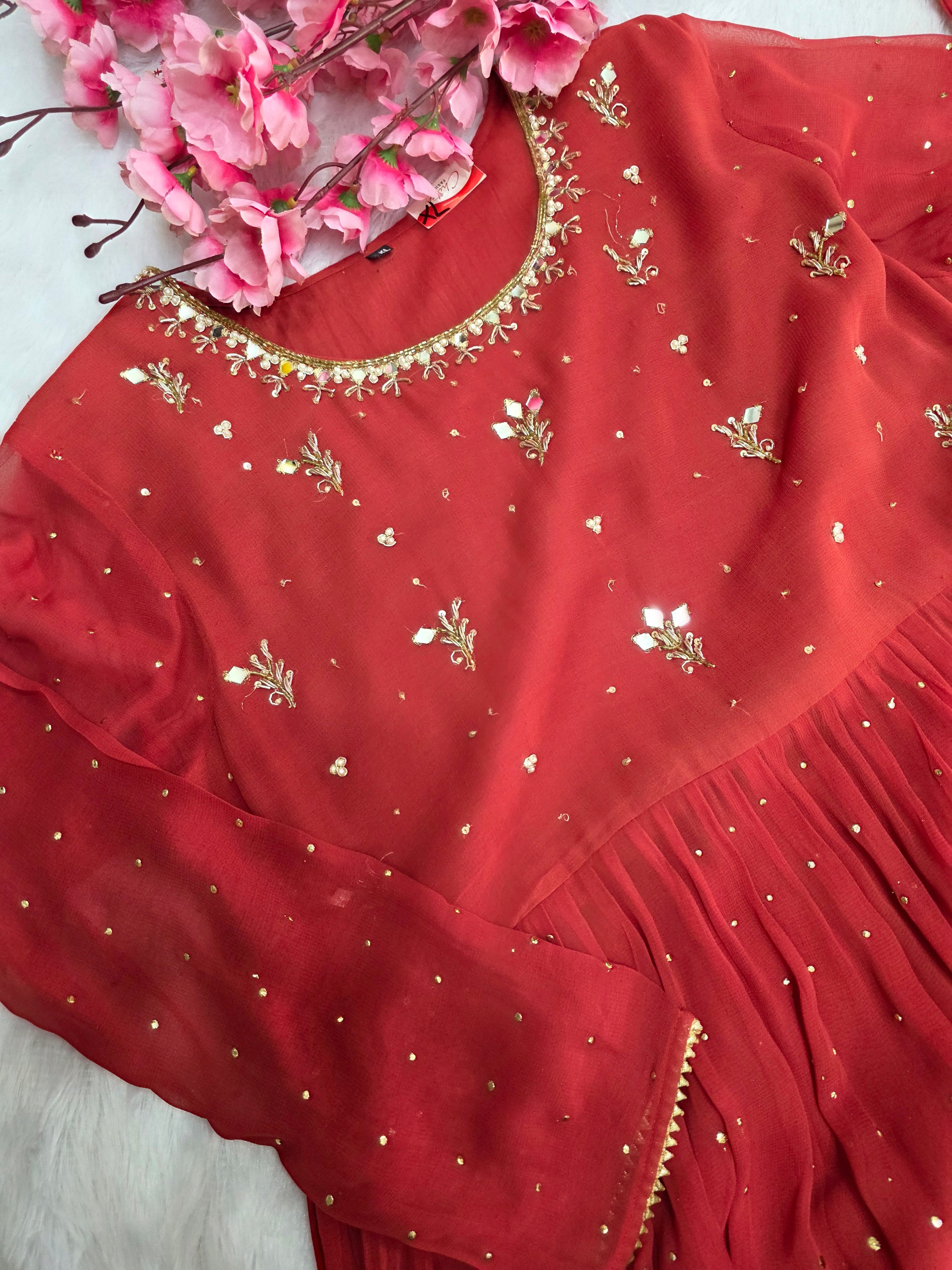 893002 Premium Pure Georgette Designer Gown With Mirror Work (104003) C77005