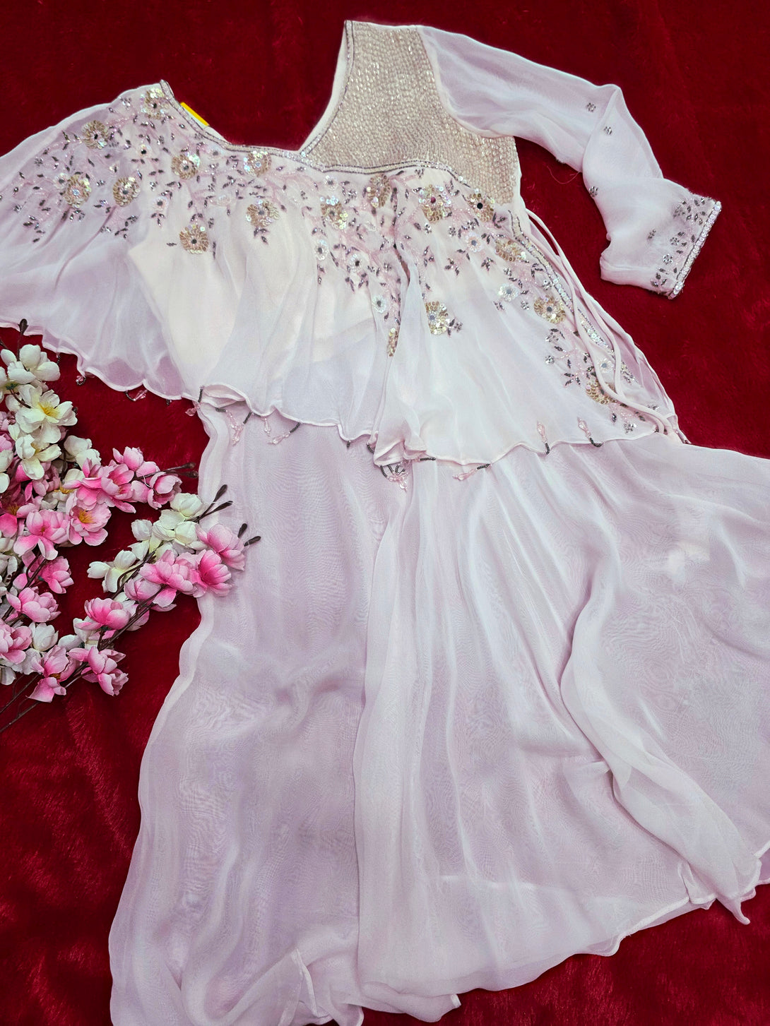 893010 Designer Pure Georgette Crepe Silk Peplum with Palazzo
