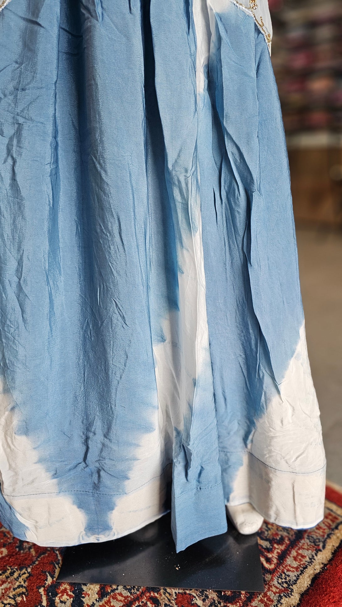 Make a grand style statement with this Crepe Silk Semi Stitched Lehenga, beautifully designed with hand Dyed Shibbory work. It comes with a heavy Cutdana work blouse and an elegant 2.5 mtr Organza dupatta, perfect for weddings and festive occasions.