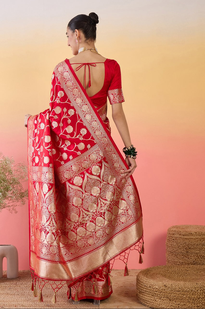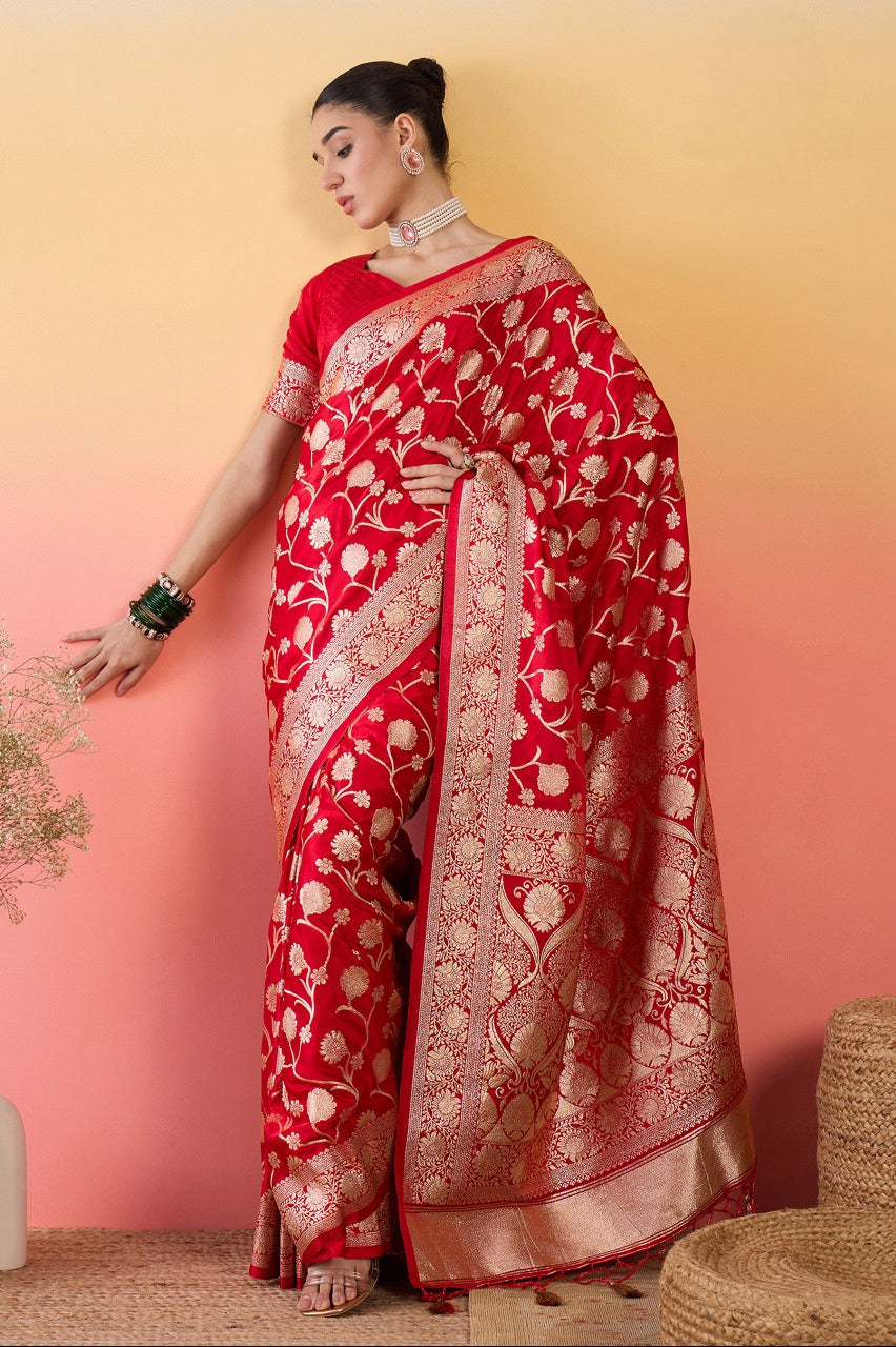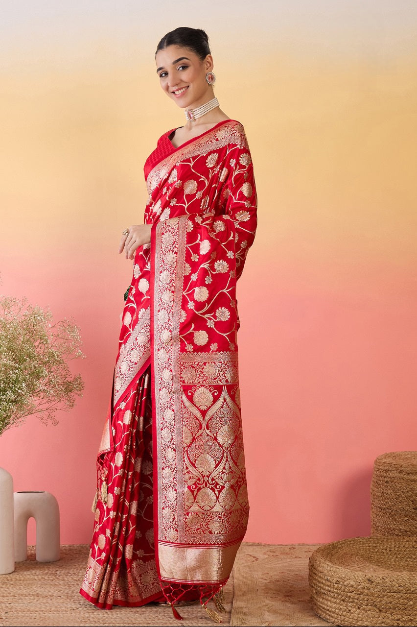 912001 Jhankar Zal Work Banarasi Satin Silk Saree - Red