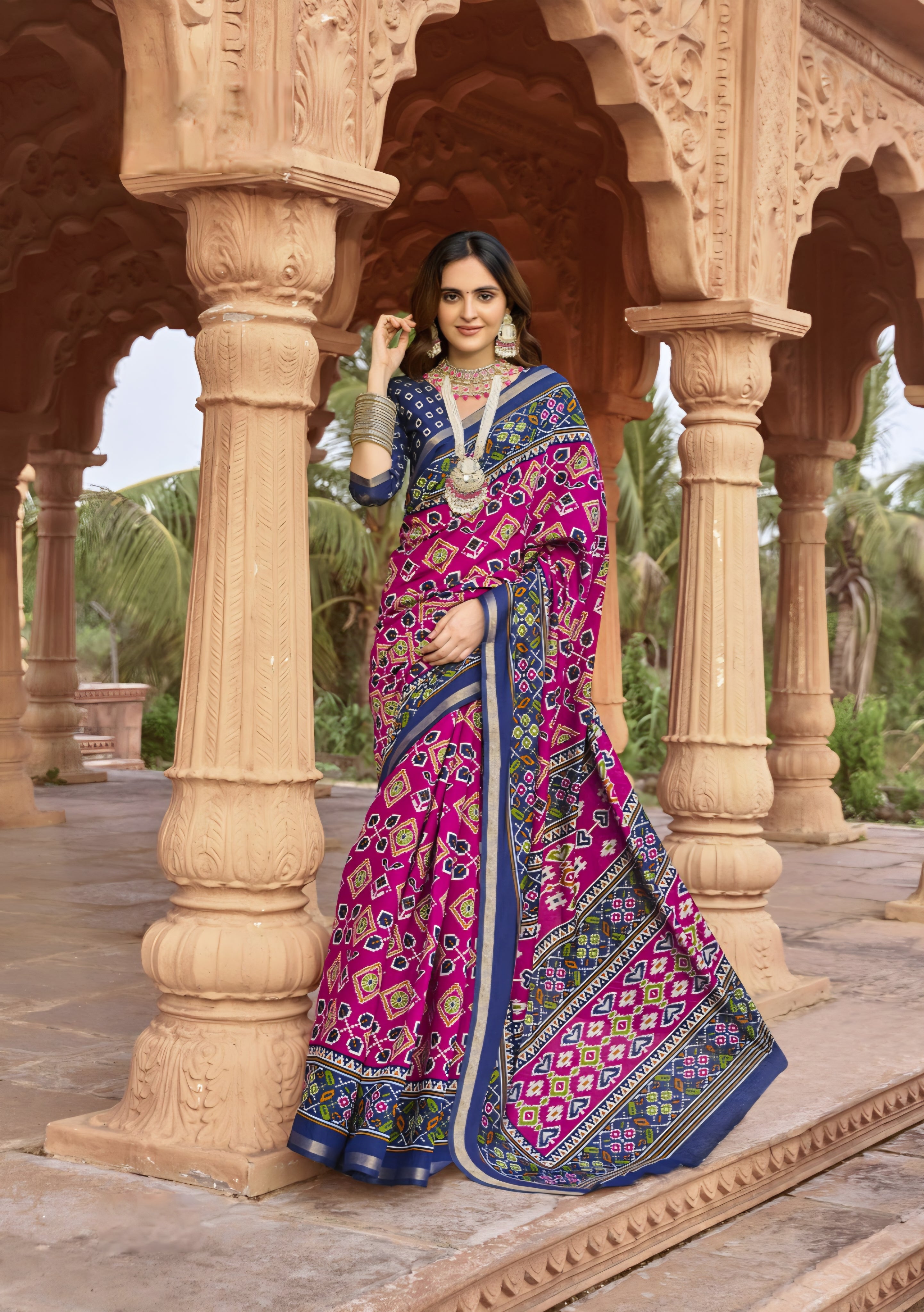 913005 Patola Print Soft Cotton Silk Saree with Small Zari Border -