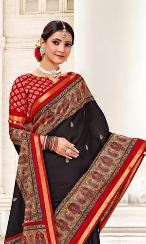 914001 Very Soft and Premium Looking Cotton Saree with Zari Border - Black